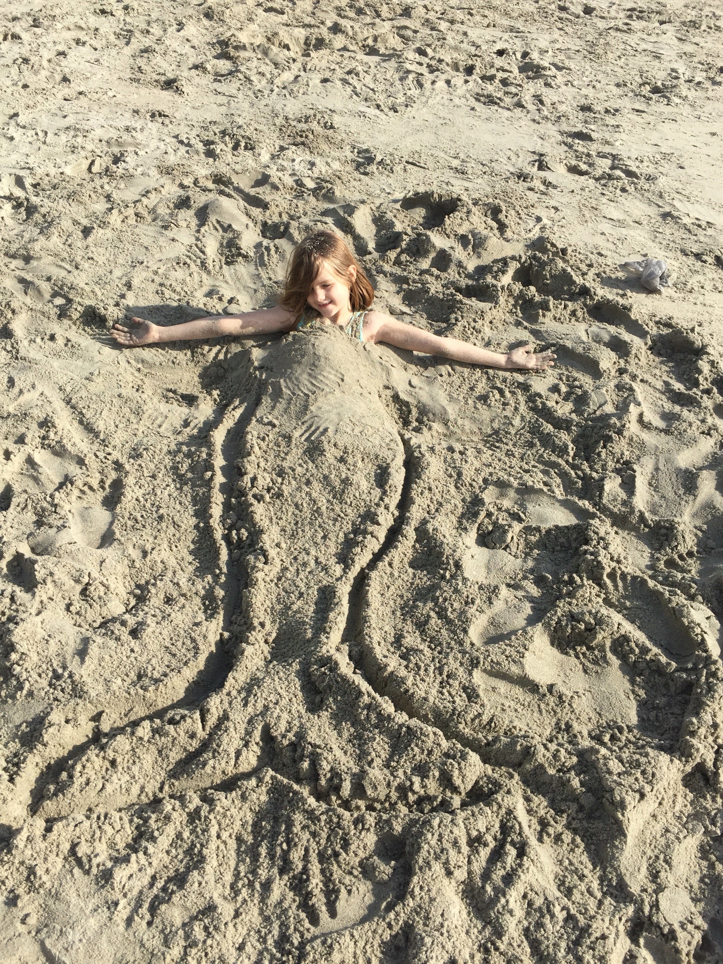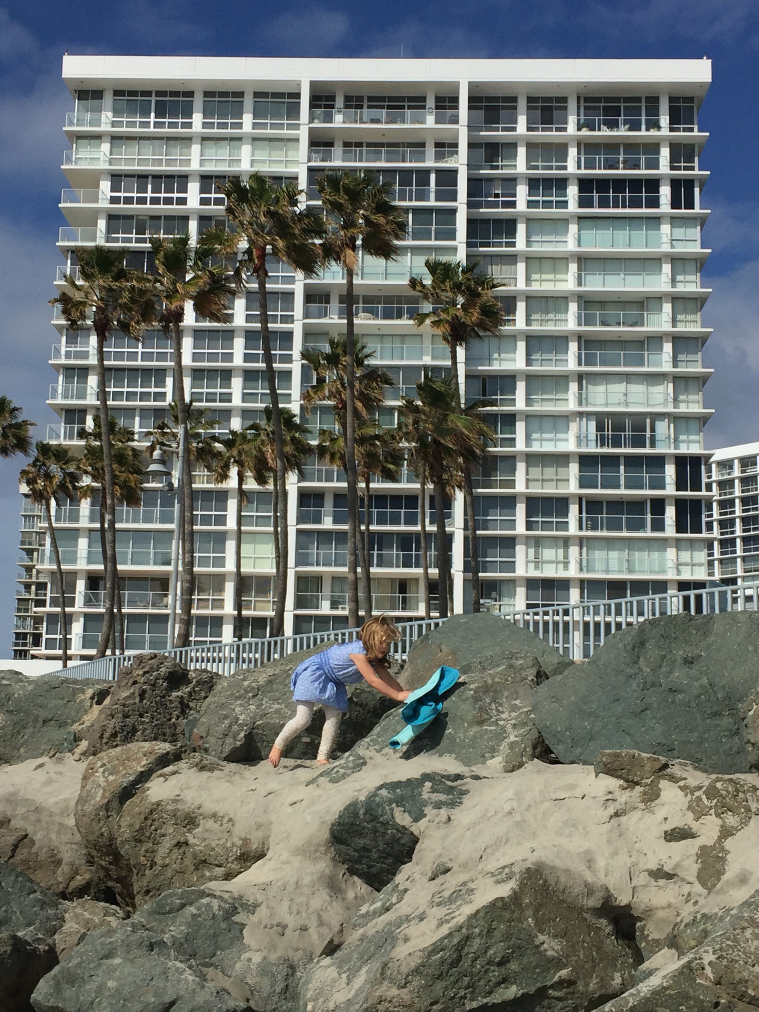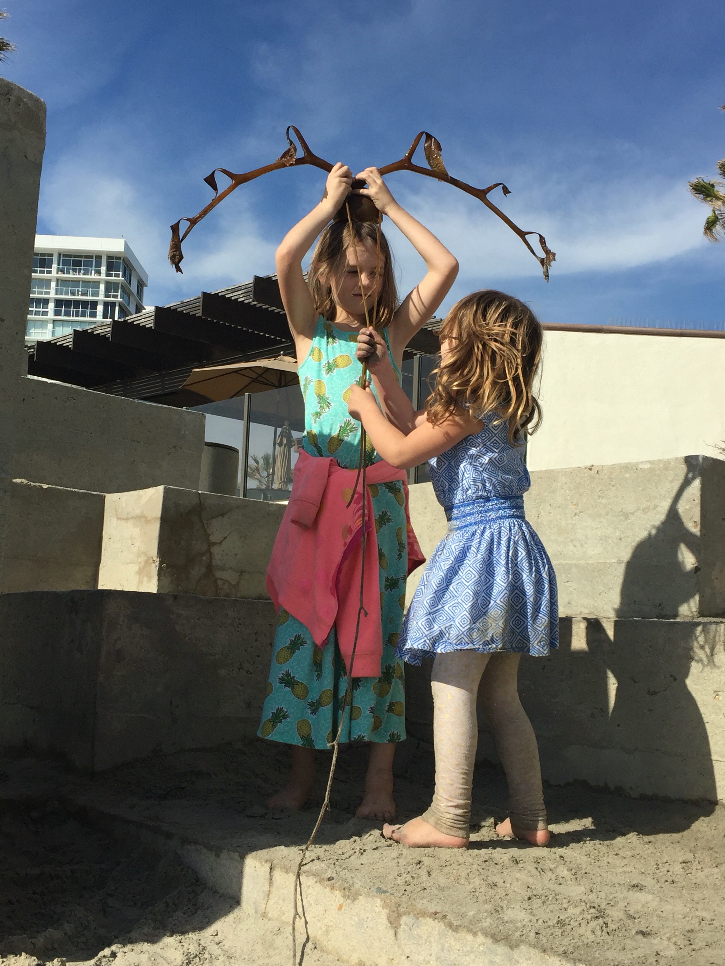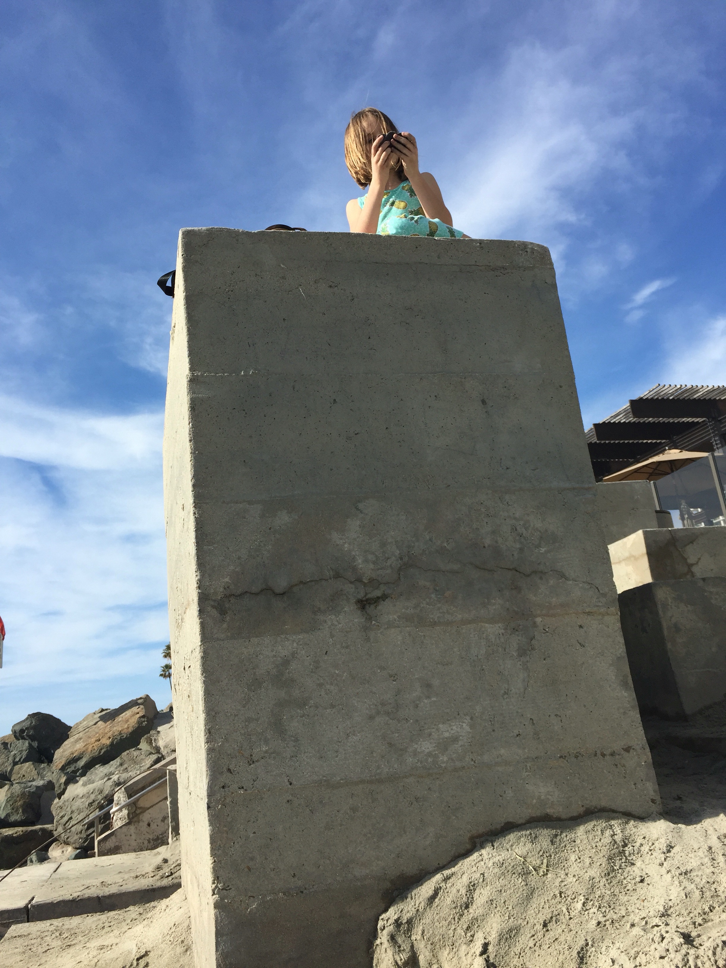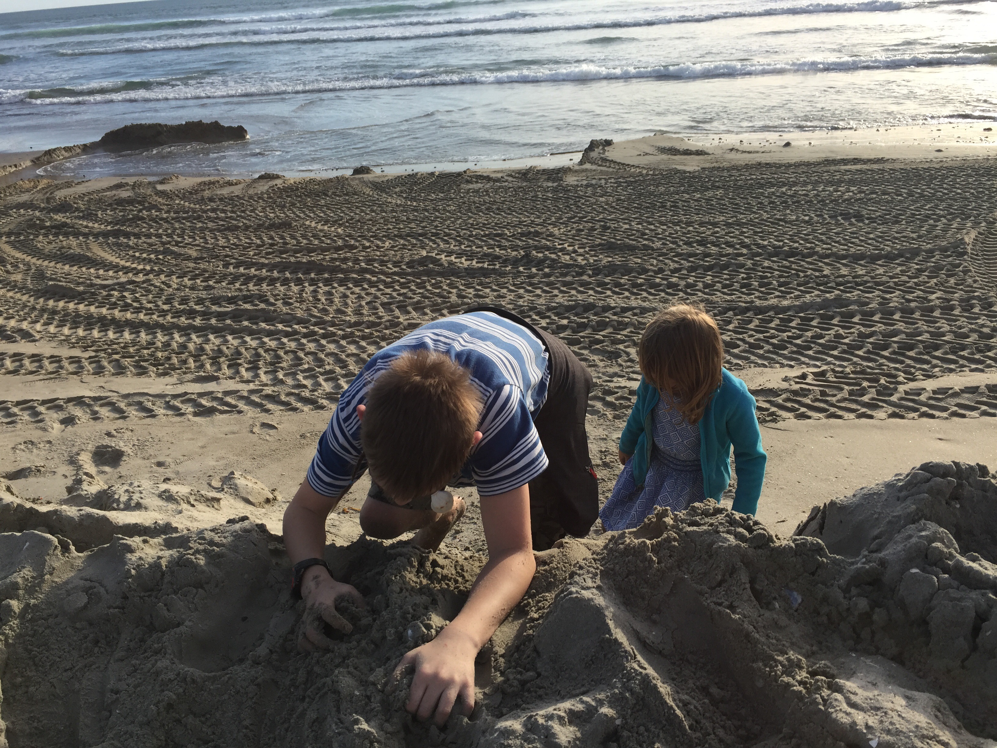 The kids played for 3-4 hours making ropes out of seaweed, burying eachother and climbing on the piles of rocks, sand, and cement.