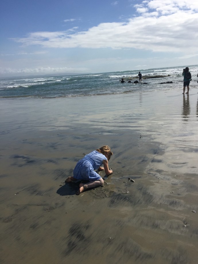 We left the beach just befor sunset to meet up with Greg and Belinda Luther at Slater 50/50 for dinner. Belinda will always hold a special place in my heart as I met her when she was a travel nurse working at Silverton Family Birth Center…my home hospital/unit. She has been there the whole time to answer many of my questions and point me in the direction of people who could answer my questions. Dinner was lovely. It is hard to go wrong with the bacon everything me up at Slater 50/50. It was a little too loud for visiting, but we managed. Eve was over tired and unable to control her body. The fun grandparents that Greg and Belinda are, Eve made quick friends and sat with them for the last little bit. With her it is a struggle mosttimes. Are we too strict, or too lenient? It is hard to know.