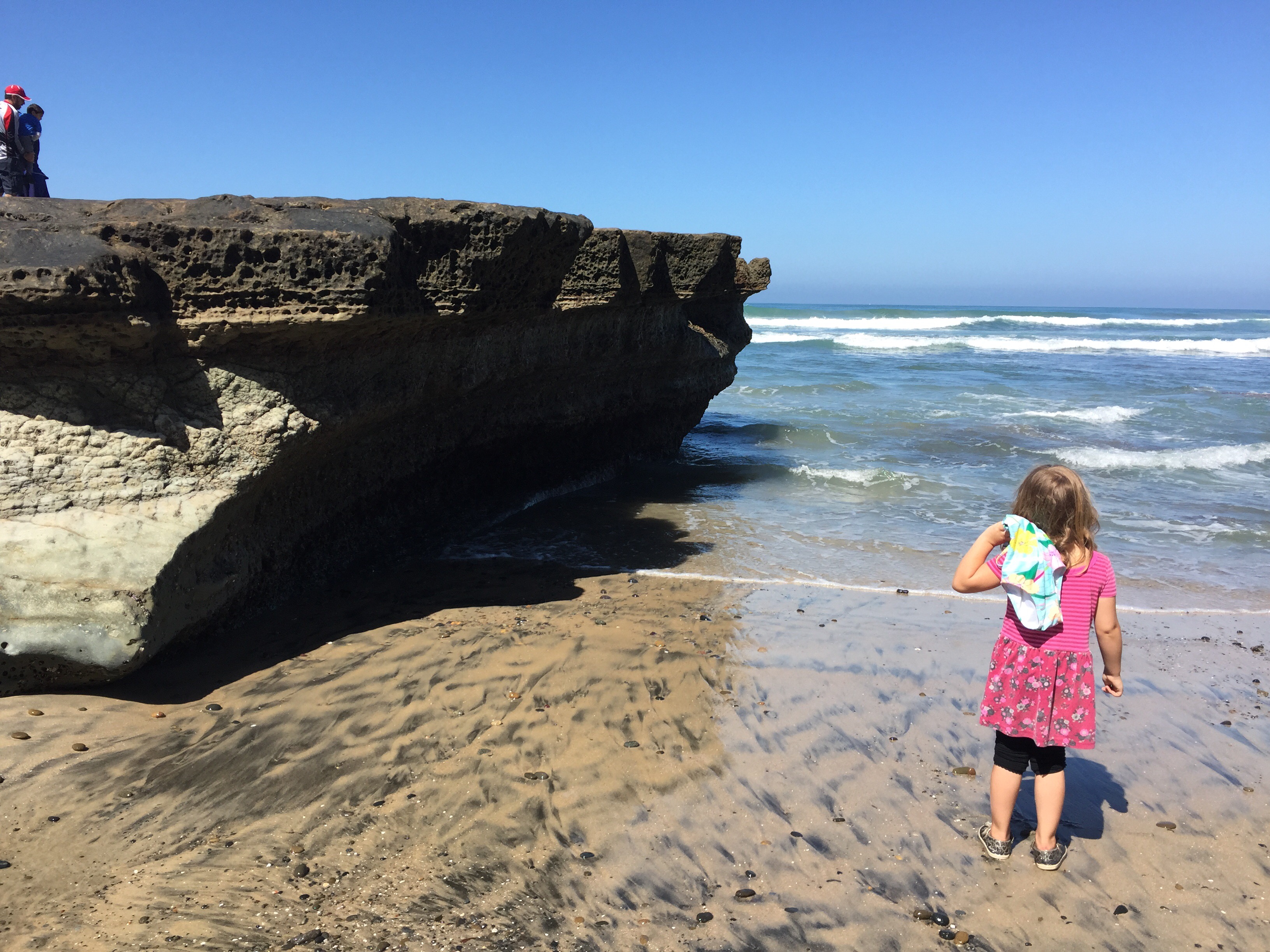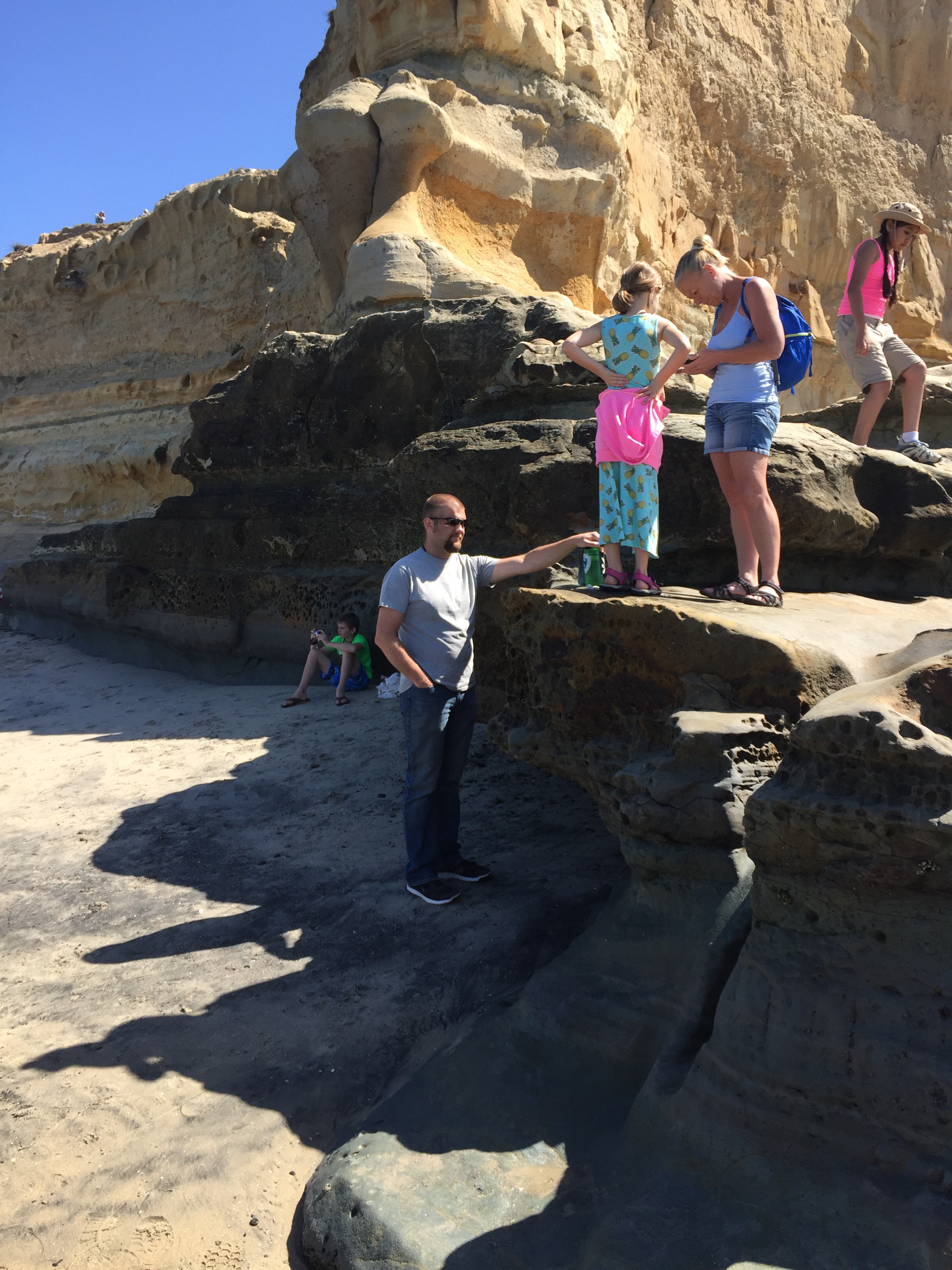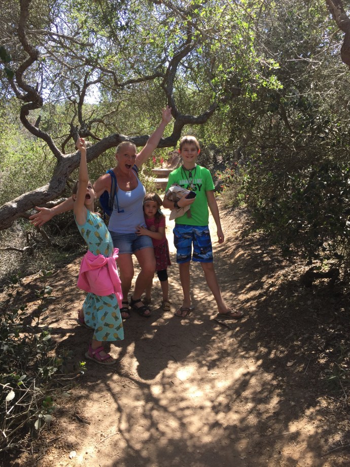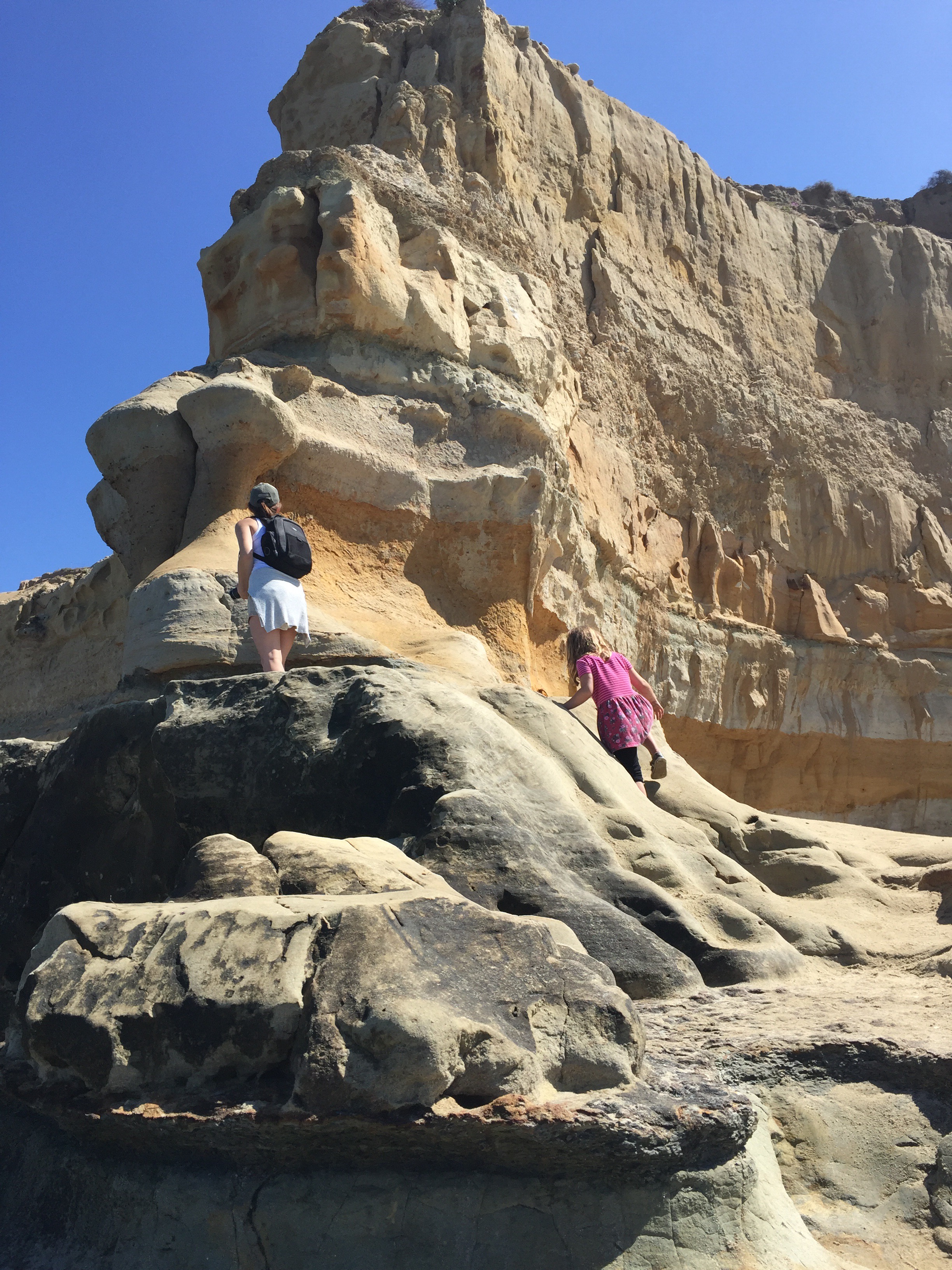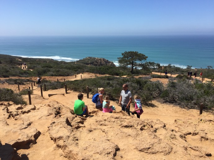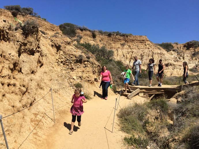We met Tiffany on assignment in Hilo Hawaii. An L&D nurse, traveler, nature enthusiast, hiker, loves the ocean, loves the sun, and loves the son. If you have haven’t read Ecclesiastes that means Jesus God’s son. Besides having a lot of things in common she is amazing with the kids and they all adore her. In Hawaii she lived on a peacock reserve for a short time and so when we told her that we were going to hang out with Tiffany today they were very excited. “You mean the peacock lady!!!” “Yay!!!” The weather was perfect the sun was out and we were doing a hike that was along a gorgeous section of the beach. The Ragnar relay was going on, and I think we must have just missed my cousin who ran in it as the team was just south of us waiting for their next runner at Torrey Pines High School. That as well as it being a weekend and a ton of cyclists were out it made it hard to find parking and a lot of people to contend with. We found eachother pretty quickly and picked up where we left off in Hilo. The kids were shy for about 30 seconds then we could hardly talk over them in their excitement. Caleb who had been sick most of the week was dragging a bit but he did well and didn’t complain at all. Tiffany and I have been making plans for a longer hike in the beginning of May so we were talking over plans for that as we walked, as well as other work related things.