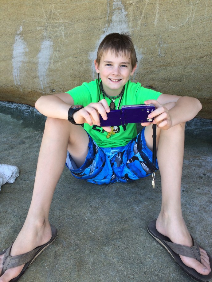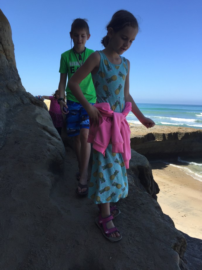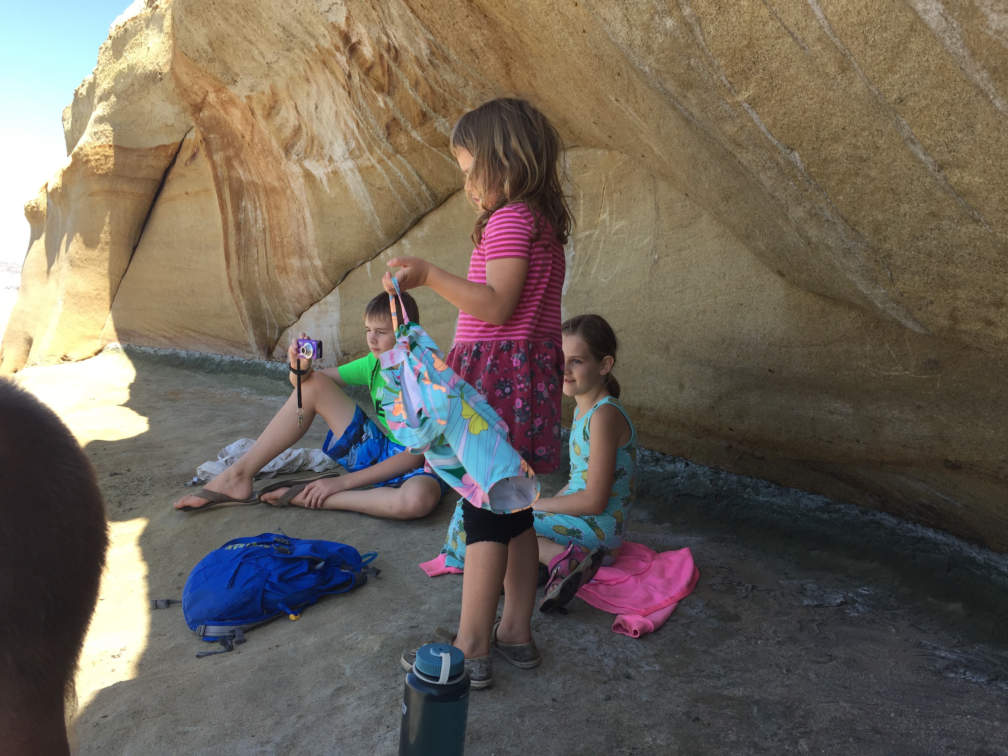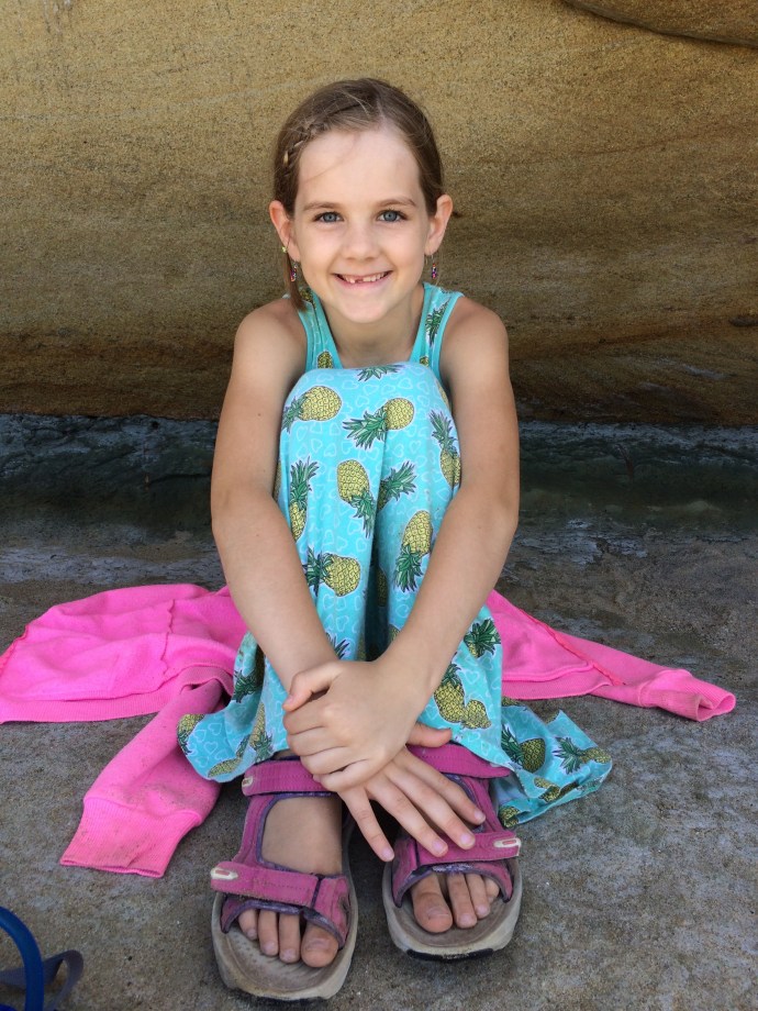 Hannah found a fun little ledge to sit on while we enjoyed the beach.