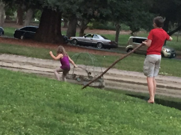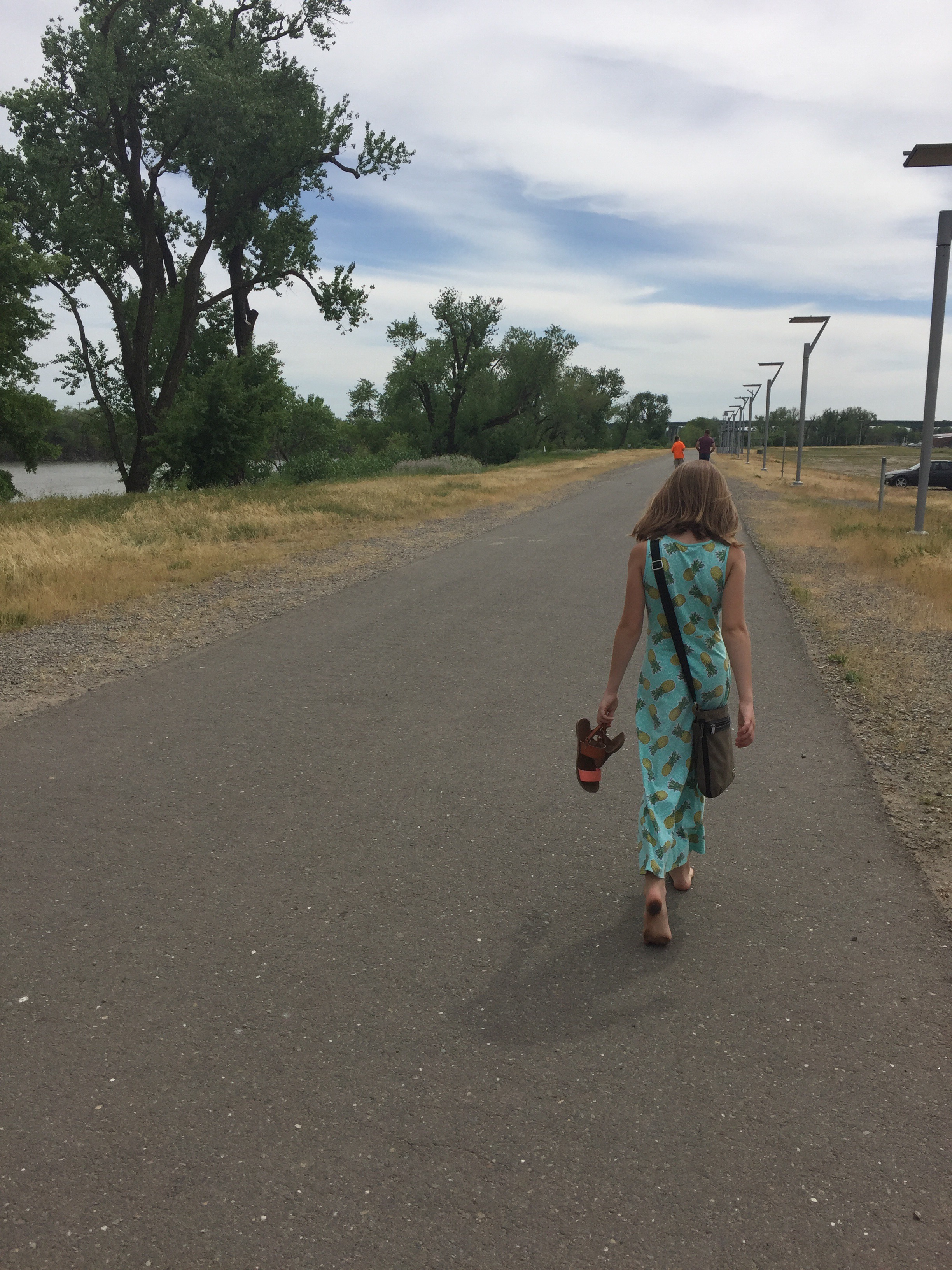 We walked around for a couple of hours before deciding to take the along-the-river route back. Another 4-5 miles. The kids were troopers we estimate that they walked about 12 miles on this outing. Hannah was getting a little tired of her shoes and so she walked with out them for a while. No one complained about all the walking.