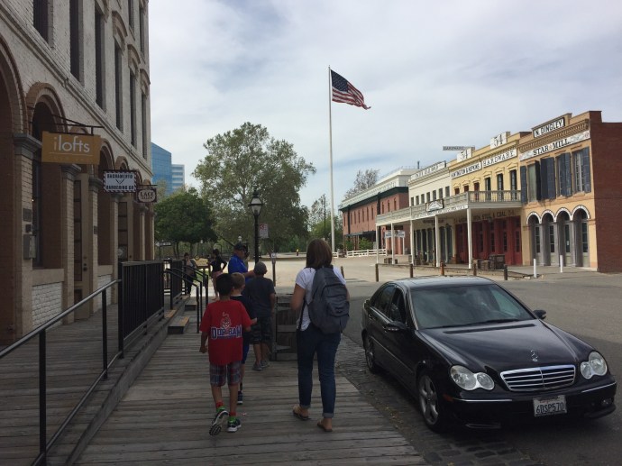 Both of the families that we came to Sacramento to visit had work and school during business hours so we had decided to spend the day at Old Sacramento which continues to be one of our favorite things to do in the Sacramento Area. We had the time and needed the activity so we had decided that we would walk from Williams house to Old Sacramento. (The kids were up early and out jumping in the trampoline by 0645. It was so nice out.)