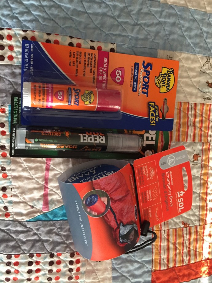 I bought the purple synthetic long sleeve shirt at Walmart along with a cheap pair of sunglasses. I also bought a stick of sunscreen and bug spray. I didn’t end up taking the bug spray as they didn’t seem to be a problem on the first section of trail in the desert anyway.