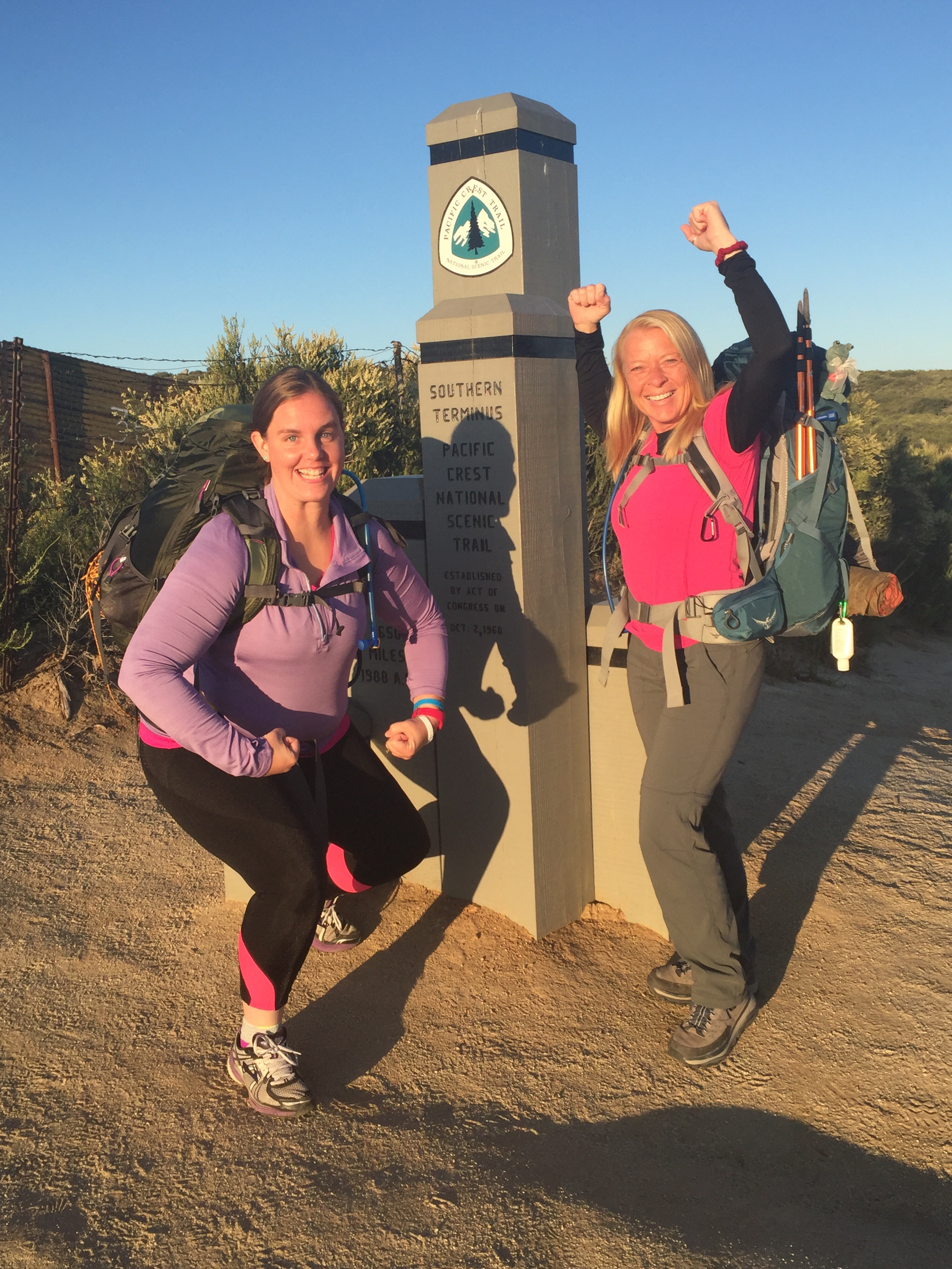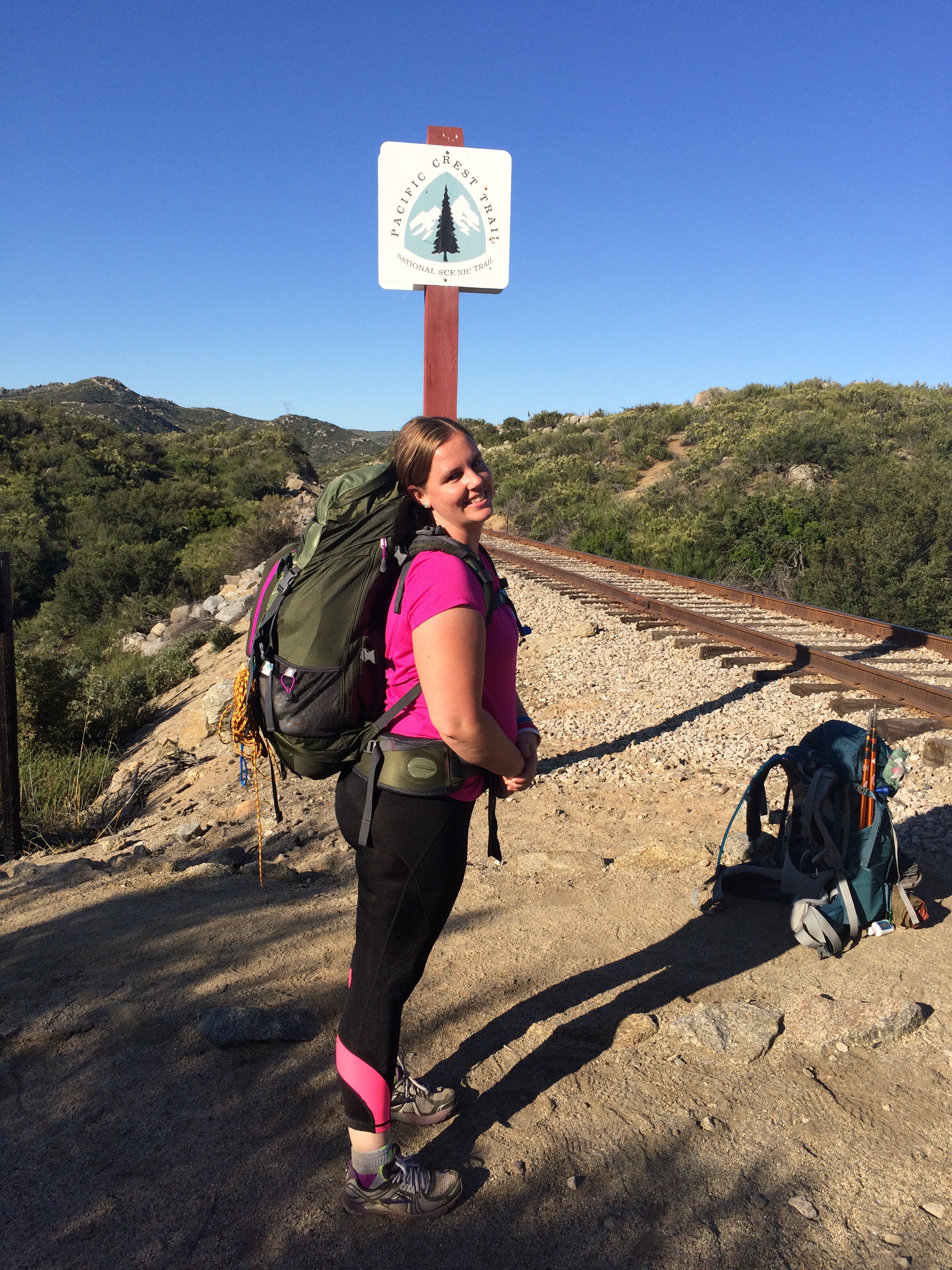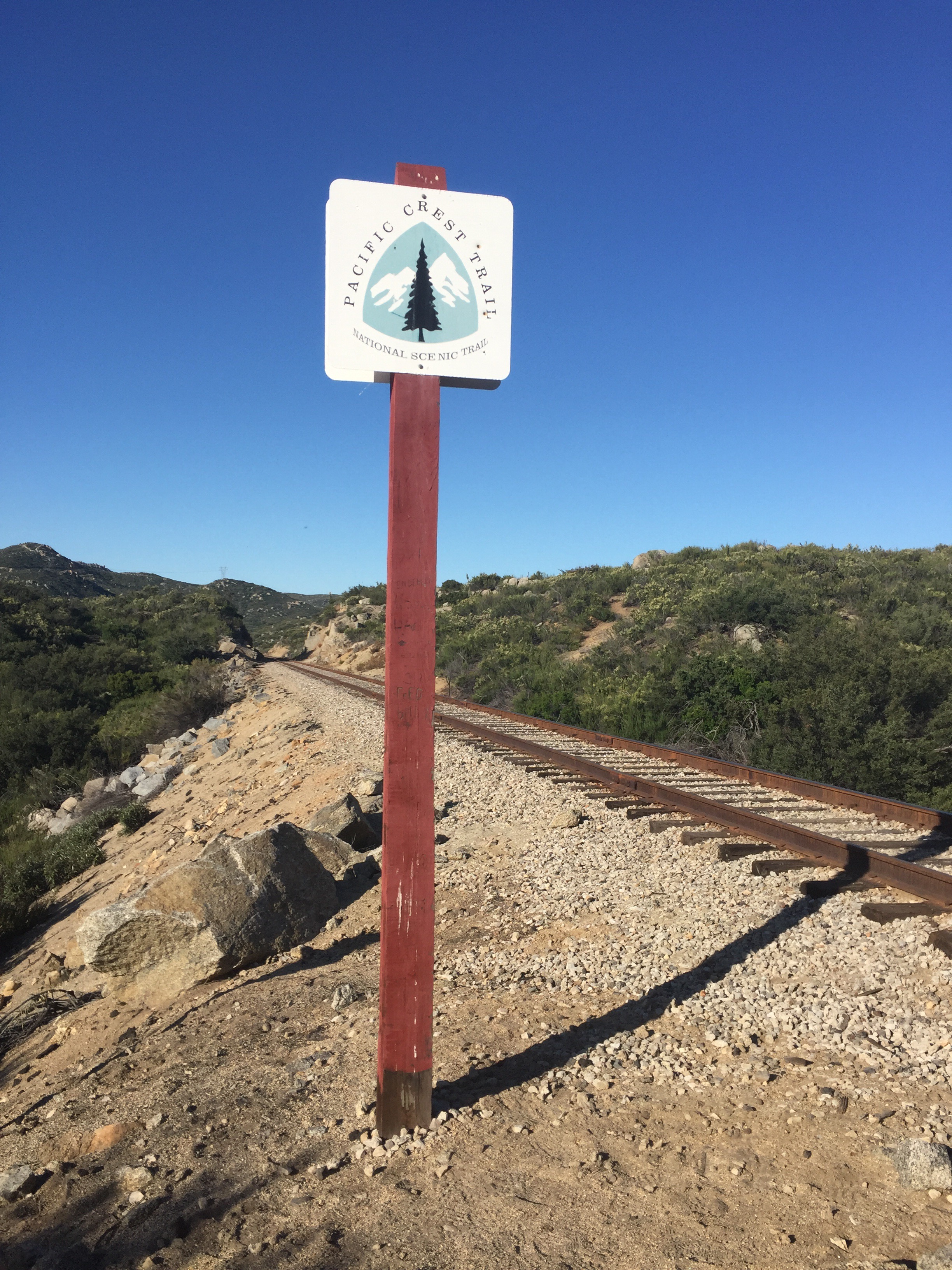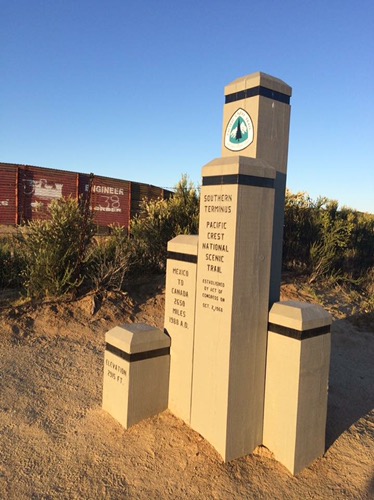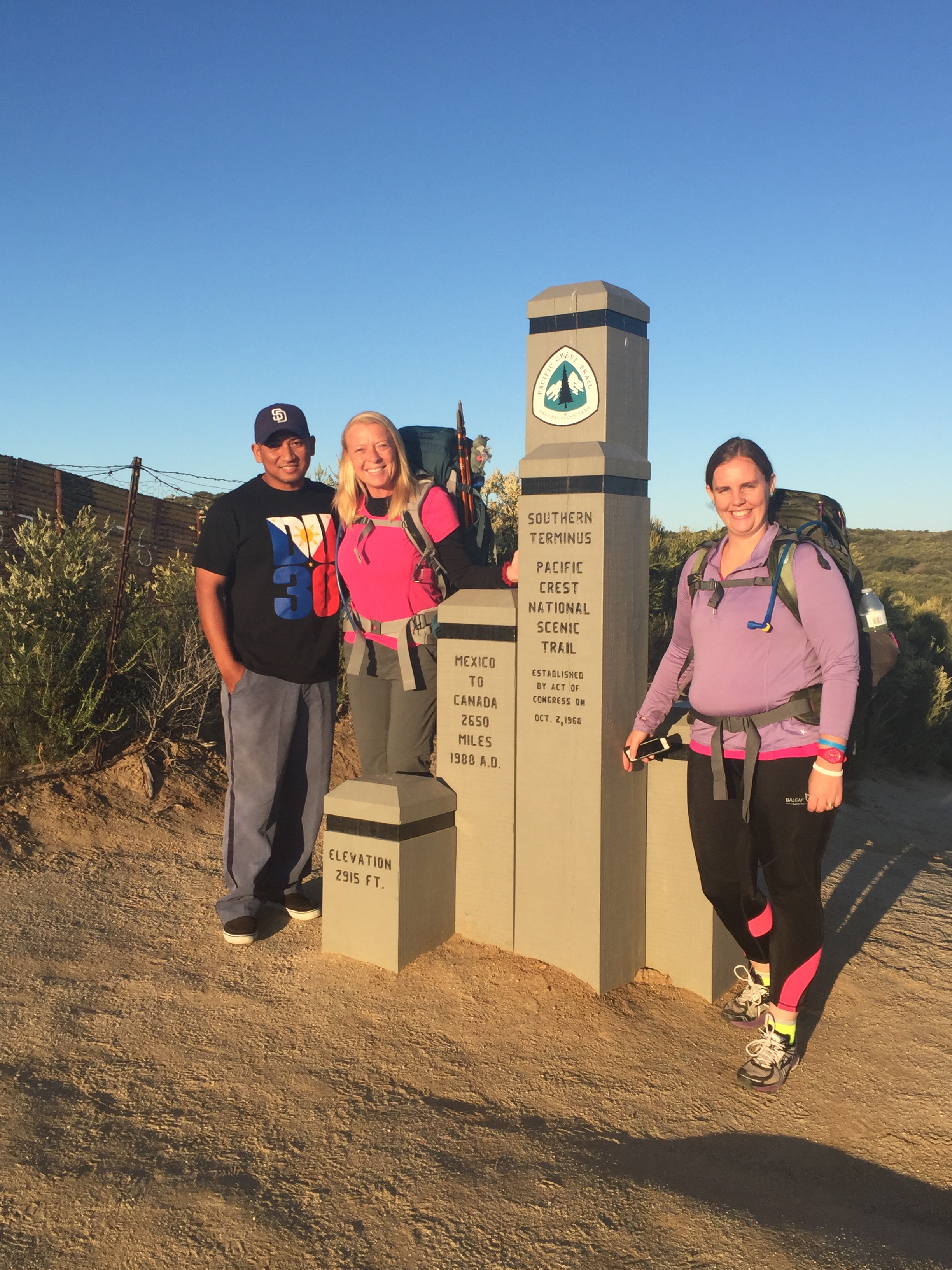 0400 Tiffany was up and in the shower. 0415 I straitened up the couch where I had been sleeping unplugged my phone sending out a mass text to my MIPs (most important people) well the ones who would be worried about me and my emergency contacts letting them known where we would be, what time we plan to be back, who I was hiking with and that I was putting my phone in airplane mode to save on battery. I was quickly changed into hiking clothes. We ate hard boiled eggs and peanut butter tortilla wraps for breakfast chugged some water and watched for Jay. He showed up around 0445 and we were off. I followed in in grandpa’s truck he calls The Boy Scout planting it at the campground in Morena Lake at the 20.3 mile ending we had chosen for this small section hike. We checked in at the camp office and paid our $3/night X three nights imagining that we would be quite slow. We then all climbed in Jay’s car and headed to Campo only 6.8 miles drive from Morena Lake. Tiffany checked us in at the boarder patrol office like the PCT (Pacific Crest Trail) book suggested. They acted like no one had ever done that before. Oh well, we want to make sure we are being smart about this hiking through the desert 20 miles in the heat with no water source thing. Jay got us as close as you can get by car unless you have an all terrain rig. We could see the start. We were so nervous and excited. What had we gotten our selves into? The trail marker and register were literally right next to the boarder. There were other hikers there so we took our turn to have a few photos together at the start. Arriving,I believe, around 5:45AM. Tiffany kept saying, “I can’t believe we are hiking on the PCT! We’re hiking on the PCT!”