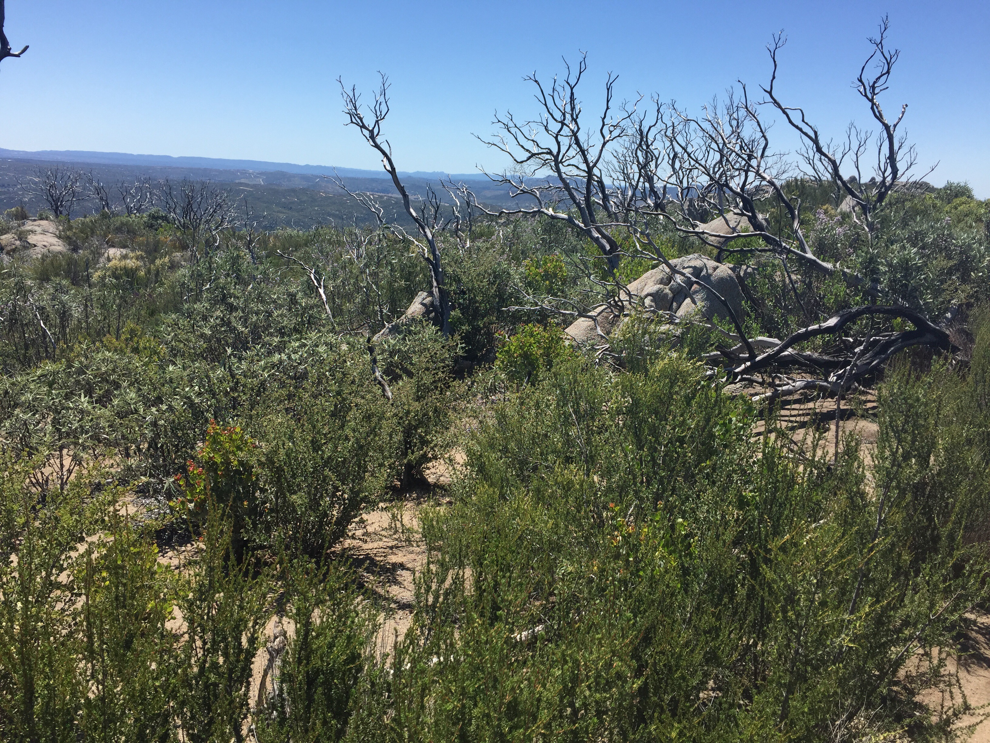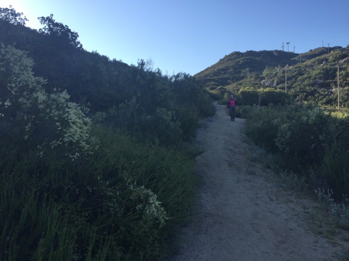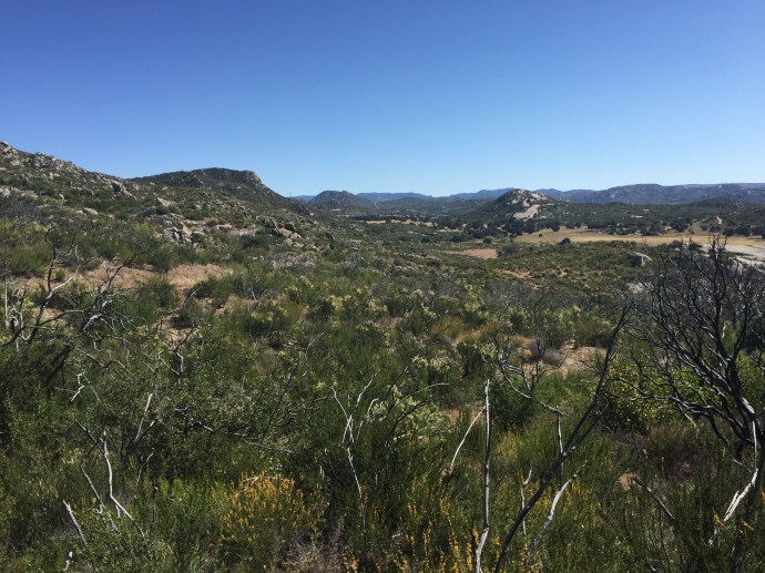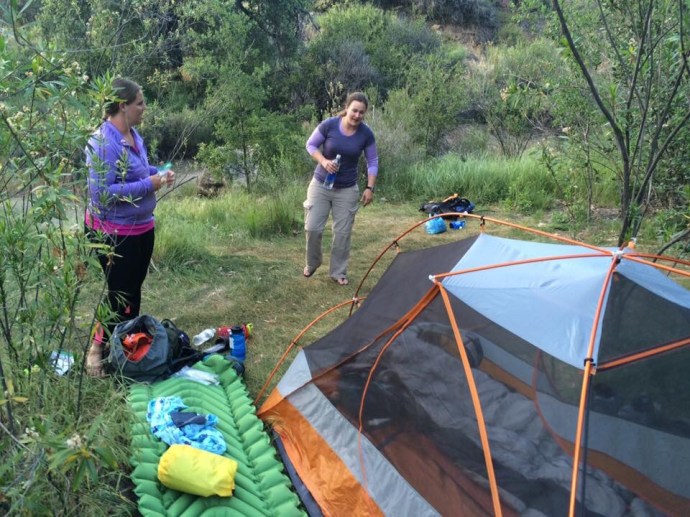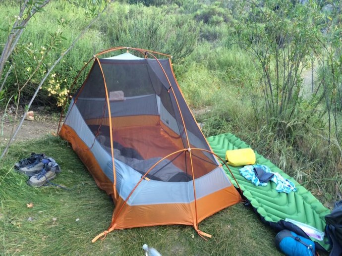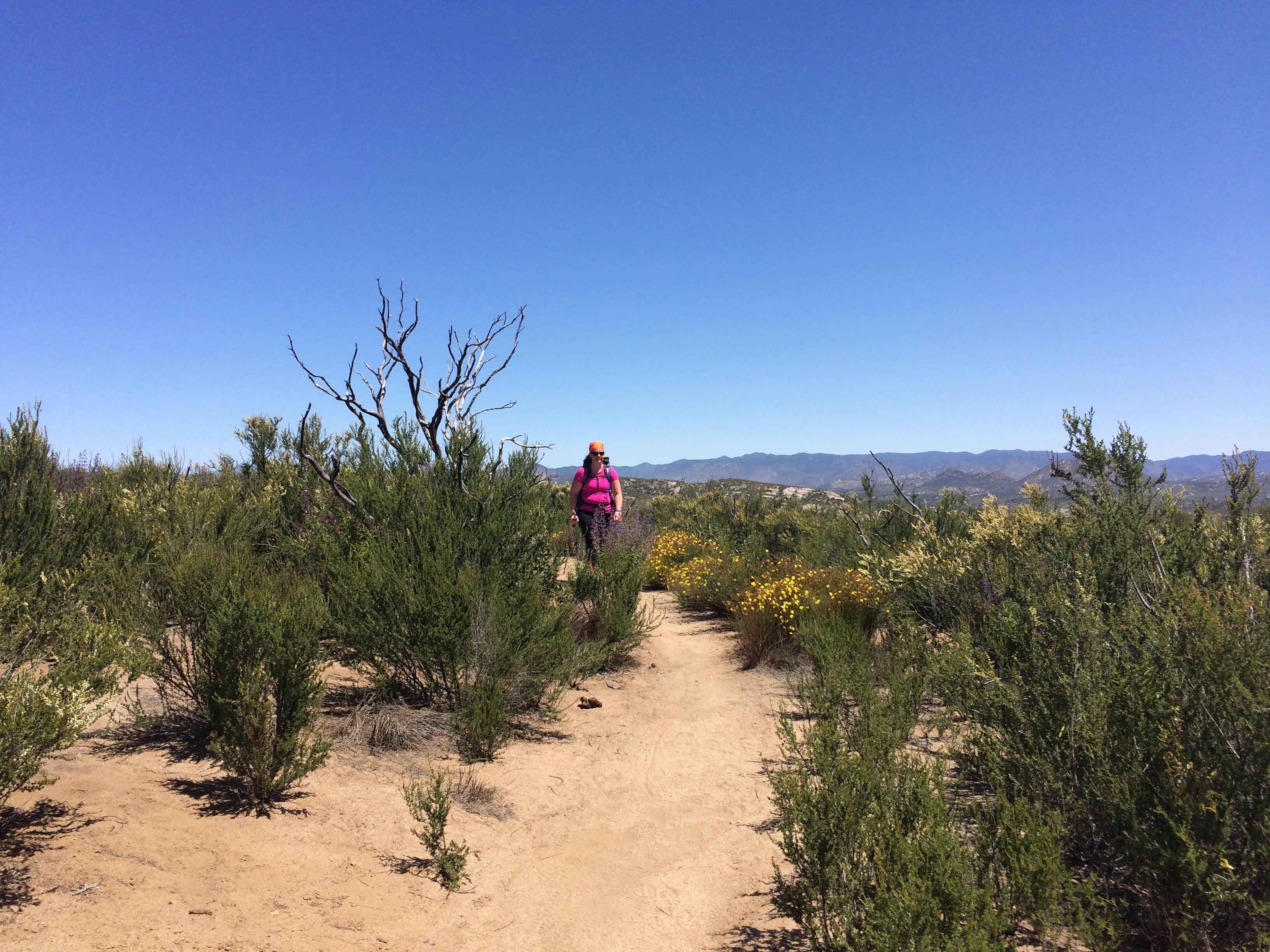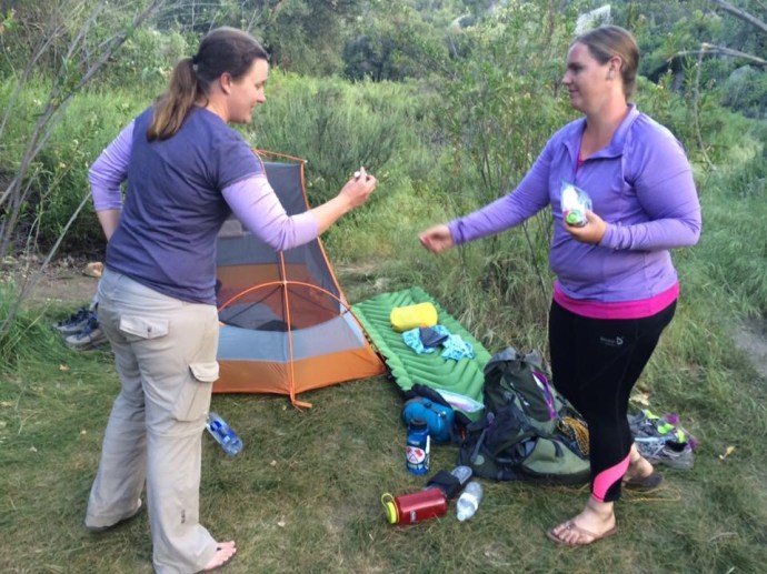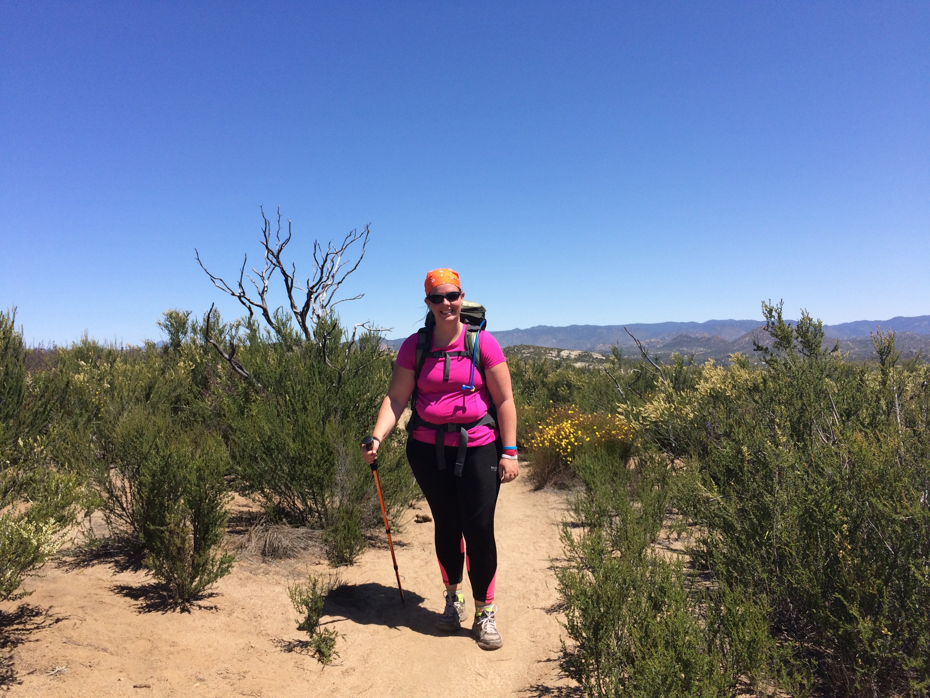 None of these pictures show the steepness of the trail as I wasn’t for pulling my camera out on those parts where I just needed to keep my momentum. I stumbled into camp between 4:00 and 4:30 Tiffany was ahead of me a little ways and I could hear her talking to some of the other hikers. I inflated the new air mattress and practically fell onto it maybe two feet off of the trail. I could not move another muscle. A lot of other hikers came by we estimate maybe 50 people started the PCT with us May 3rd we had no idea it would be so crowded. We felt completely sheepish saying we were stopping in Morena Lake when the rest of them were aiming for Canada. We wanted to through hike it with them so badly. After resting about 30 minutes I decide to try to move and I could not move my arms at all. Severe pain in my shoulders and neck warned me with every slight muscle twitch to not do that again. Tiffany found my predicament hilarious. She kept asking me if I wanted some of the snack foods she was having and for the most part I answered no. Until she got to the Mangoes where I bargained that I would have some if she could throw it right to my hand, because my arms literally could not move. I couldn’t get up, or get anything out of my bag. This must be a common hiker problem because one of the other hikers piped up with, “Oh, you have T-Rex arms” and that is exactly what it felt like. It was so painful but I got them stretched outage well as my shoulders and that crazy pain and stiffness never came back. Still I could not imagine what agony would be felt in the morning when I had to put that pack back on for the 1000′ elevation climb to get out of this Howser Creek bed oases. I took a short little walk to find a good bathroom spot making attempts to keep my muscles moving as to maybe not as sore tomorrow and they seemed to work. This whole pooping in the woods business would take some getting used to. Dinner was tasty we ate kind of early and we’re all zipped in to our tent by 6:30 or 7:00. Ours was probably the nearest to the trail but in a grassy spot there were quite a few campers with in 50 yards of us and we all gathered on the grassy patch for dinner which allowed us to get to know the other hikers we were hiking with. Three of them had recently hiked the AT. Two girls from Portland were hiking the trail with thier corgi so they were doing mostly night hiking. Several were international visitors with strong accents and a group of just post college age boys that all stuck together. We enjoyed the stories from the AT hikers. One of them worked at REI where Tiffany is from in Minisota he was helping the Portland girls learn how to take their packs on and off correctly and how to adjust them after they we on. We listened and watched taking in all of this information. A man brought a couple of two liter bottles of water for people who had underestimated their water needs. He was a “trail angel” one who watches out for hikers in this area as he lived close by. We did use some of the emergency water. We could have made it out with what we had, but we were so thirsty it was hard to save our 1.5 liters (each) that remained for the hike out. One of the AT hikers who had earned the trail name last year of Yoda for often speaking like him asked me if I had Ibuprofen for my stiffness and I had to admit that although I had planned to bring some it didn’t end up making it in my bag from my work lunch bag. She said, “do you have chapstick?”and yes I did have that. I was waiting for some kind of weird soreness hack done with chapstick like I had experienced in cycling with Red Man chewing tobacco, but know she was proposing a trade. Ibuprofen for tonight and tomorrow for use of my chapstick. She had managed to forget hers at the home she stayed in the night before. I told her that I only had 5 more miles to hike she might as well keep the chapstick. She handed me two 200mg tabs for tonight and one 800mg tab for tomorrow morning. Now that, I thought, was brilliant! If I get a chance to through hike I’m getting a prescription for scored 800mg ibuprofen tabs. I don’t generally take them until I really need them and that is a much more compact way to bring soreness/pain management with you.