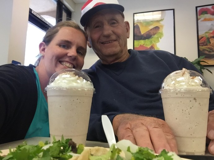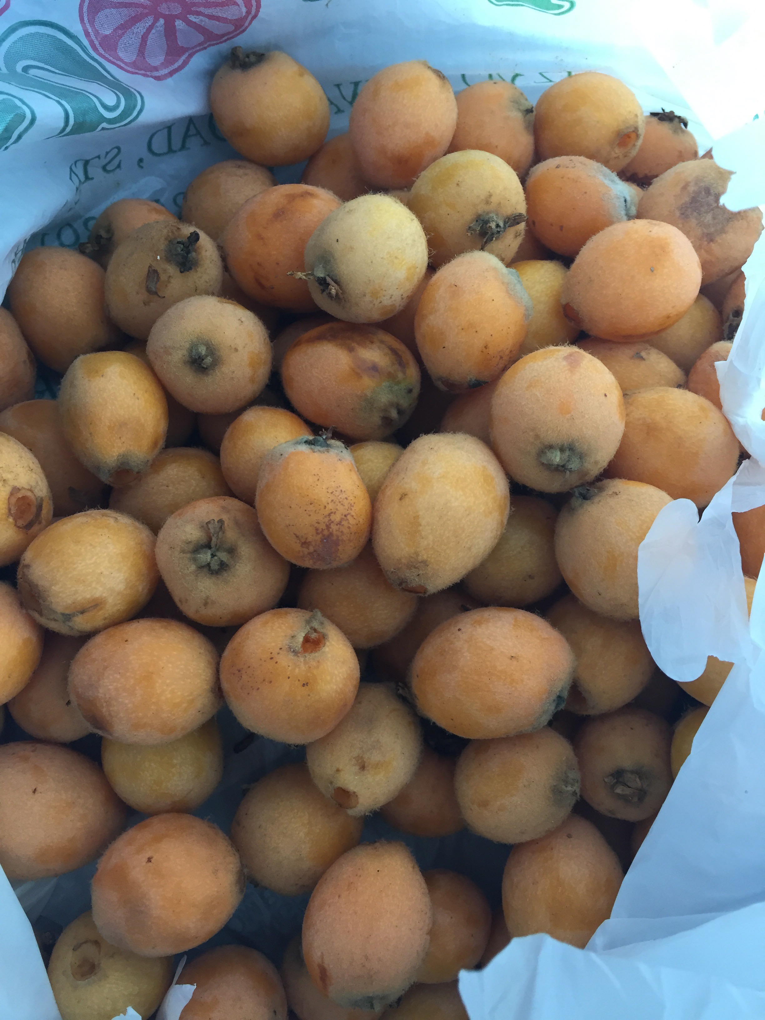 Hannah’s new shoes. I’m excited to give them to her. Below since the SBPD was so busy today we missed lunch. Grandpa and I went to an early dinner of carne asada tacos and horchata shakes. With a side of loquats that grandpa had picked today in Fallbrook. We visited for a little while before he dropped me off.