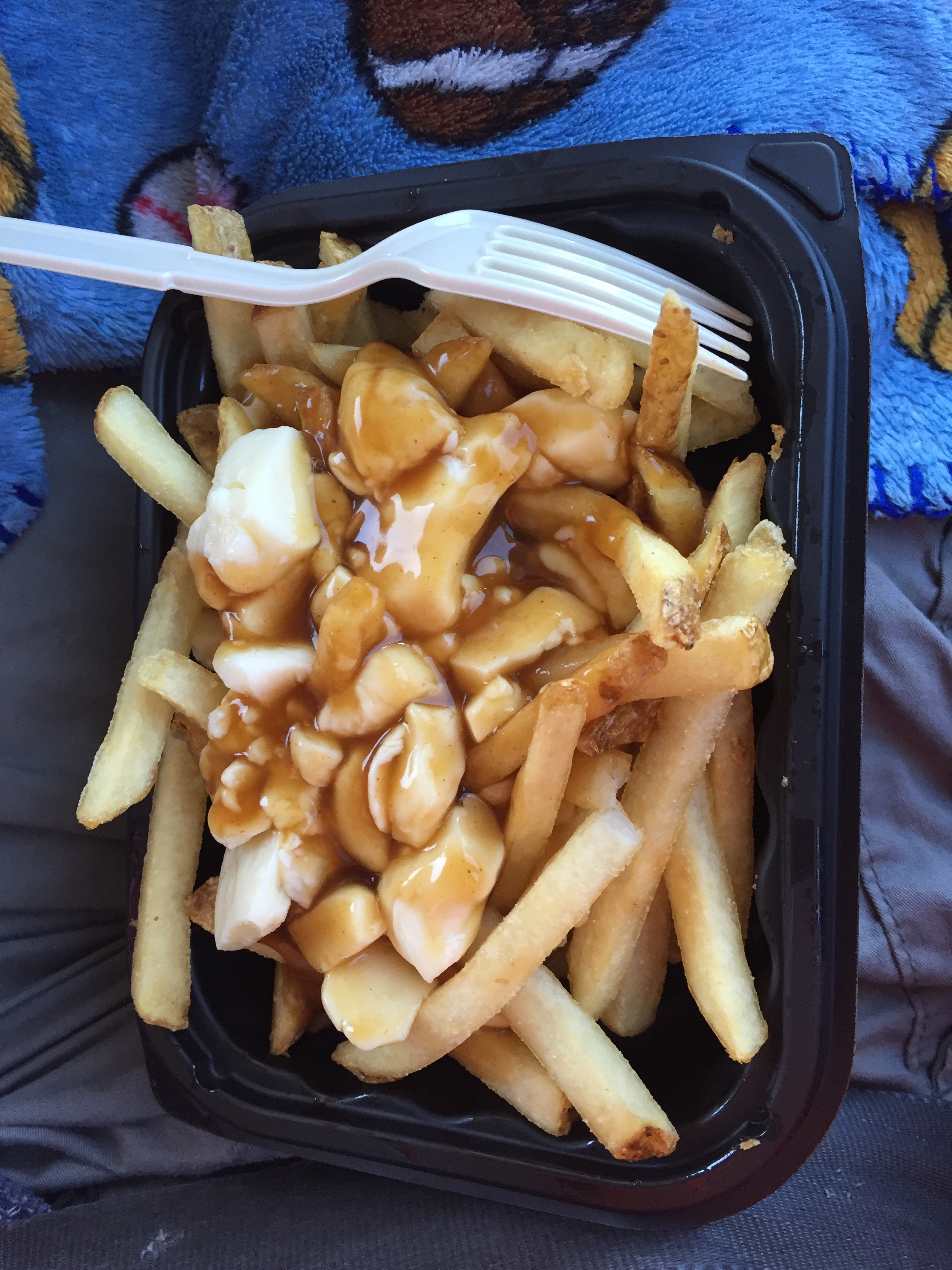 Poutine is a Canadian dish of French fries, cheese curds, and gravy. We had them with our lunch. The kids were a fan of the new dish.