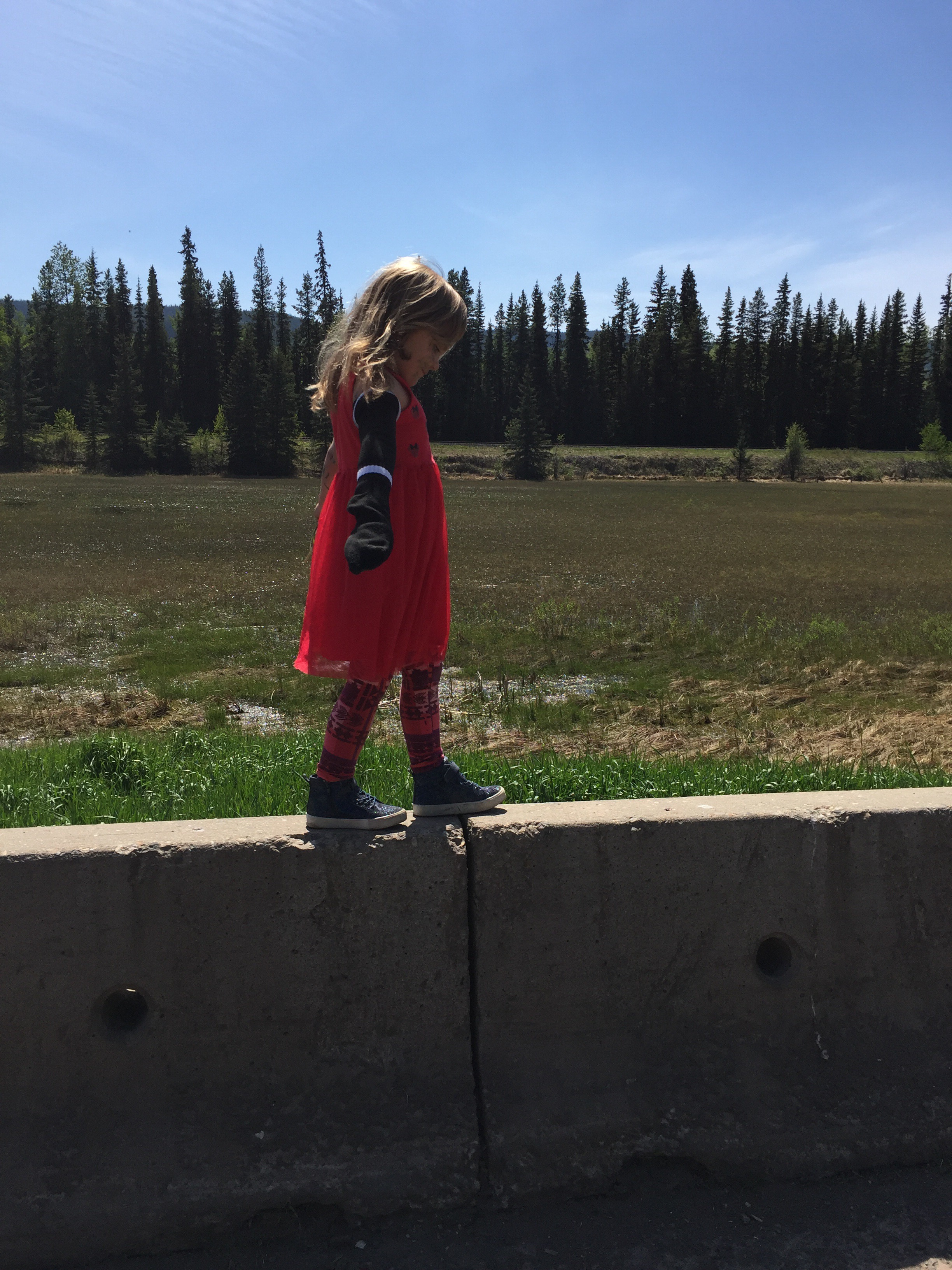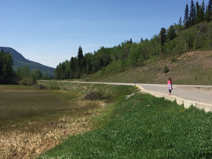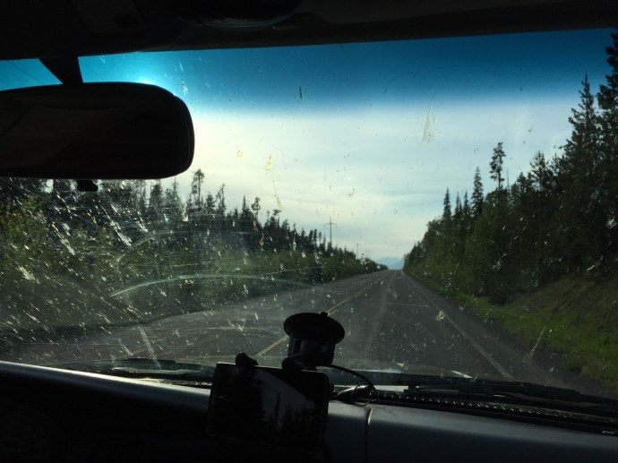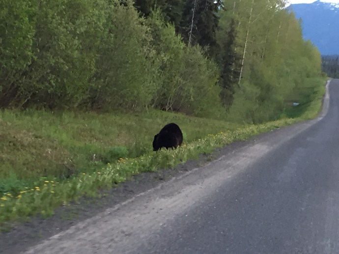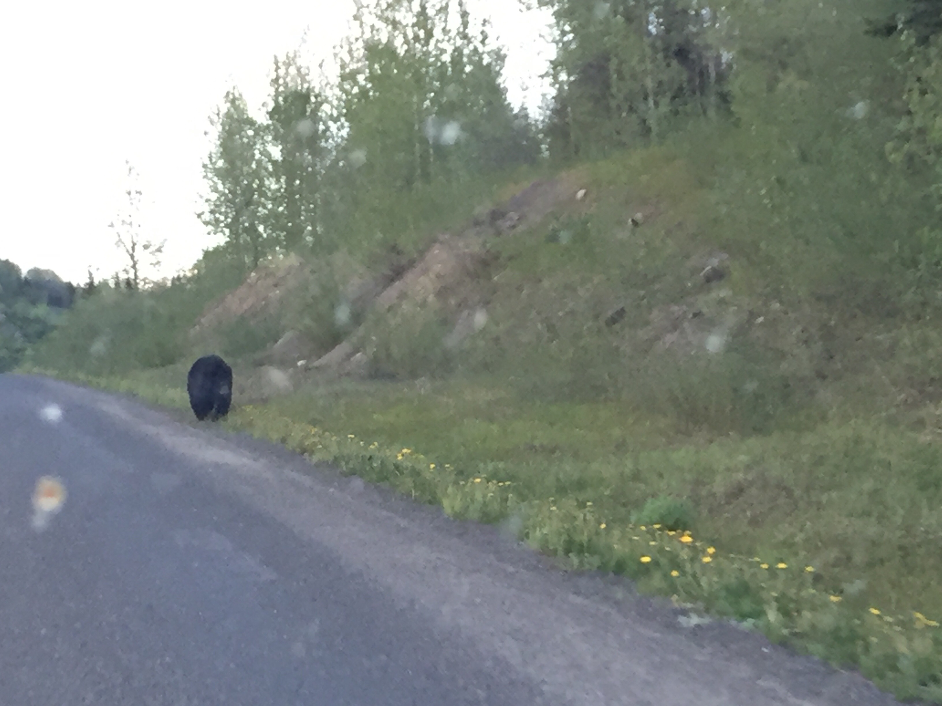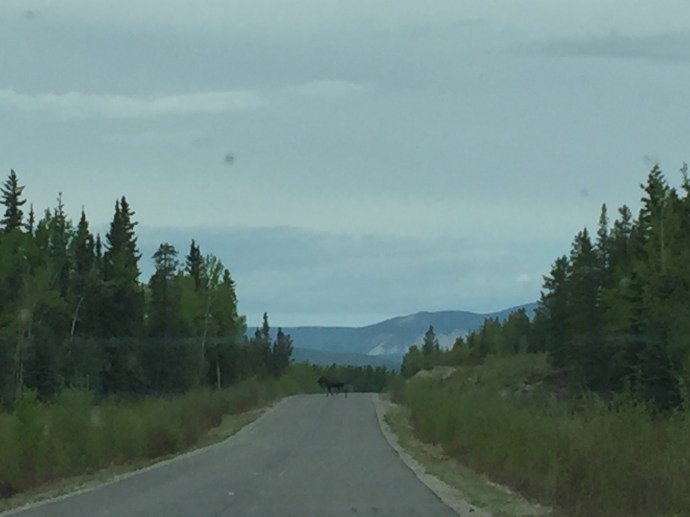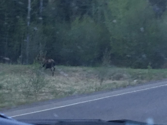 The kids have been sleeping in lately. We must have completely warn them out because since birth we have been unable to convince them to even sleep in until 0700 on a regular basis and it doesn’t matter how early it is if we are moving around they are up. This morning it took breakfast to coax them out of bed around 0800. Yesterday we had to as well. I wonder how long that will last. The drive has been gorgeous. The towns and gas stations have been getting farther and farther apart. If you miss one it will be 90km to the next. And just because there is a town doesn’t mean it has a hotel or restaurant in it. Luckily gas stations and a hotel seem to be had by most. We had planned to stop around 8:00pm but the hotel was more of a resort and it was nearly 12:00am before we found another. Oops it was light until after 11:00pm so it didn’t feel as late as it was anyway. Our wildlife total today was 7 bears, one coyote, and one moose. There was also one large hawk (I don’t know my hawks well and can’t tell you what kind it was).