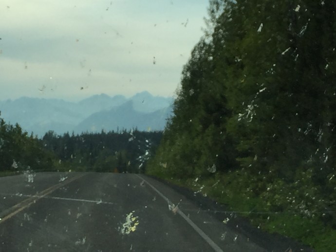 It was hard to take any pictures through all of the bug guts on the window. We stopped frequently for gas never getting below 1/2 a tank, washing the window everytime we stopped and still lit was hardly see through.
