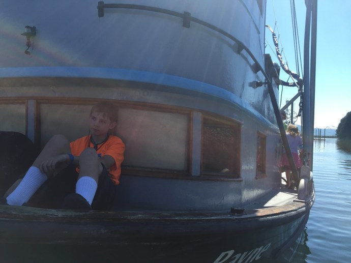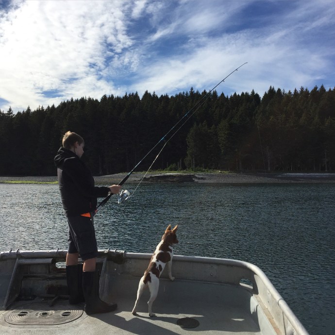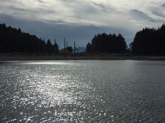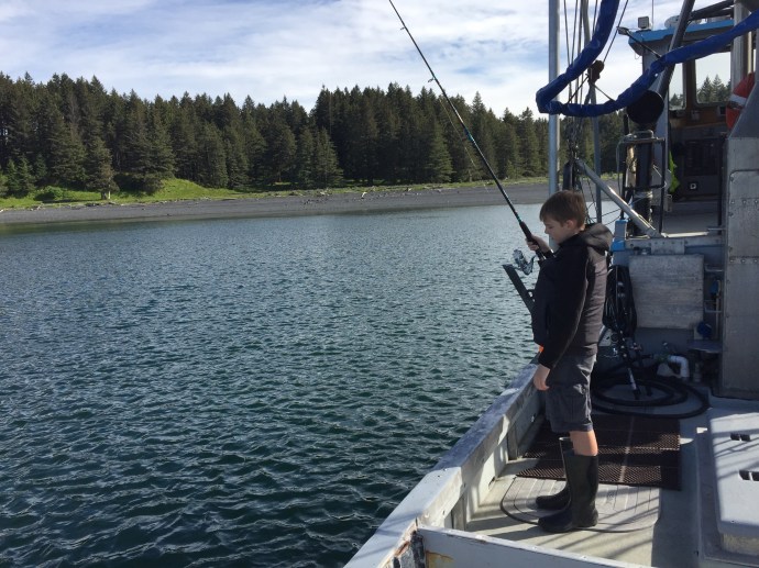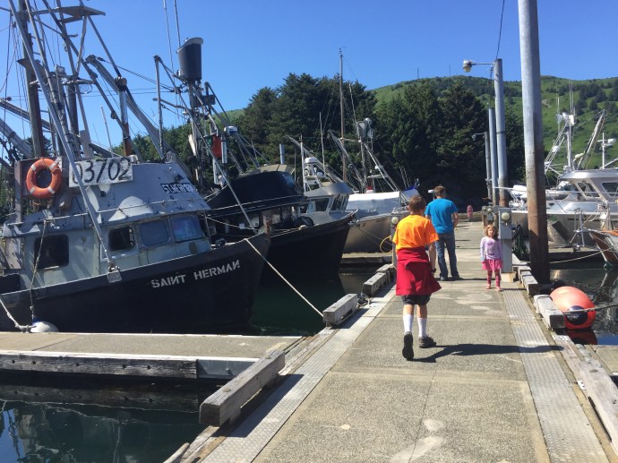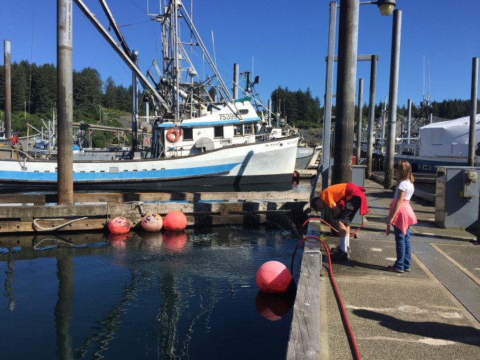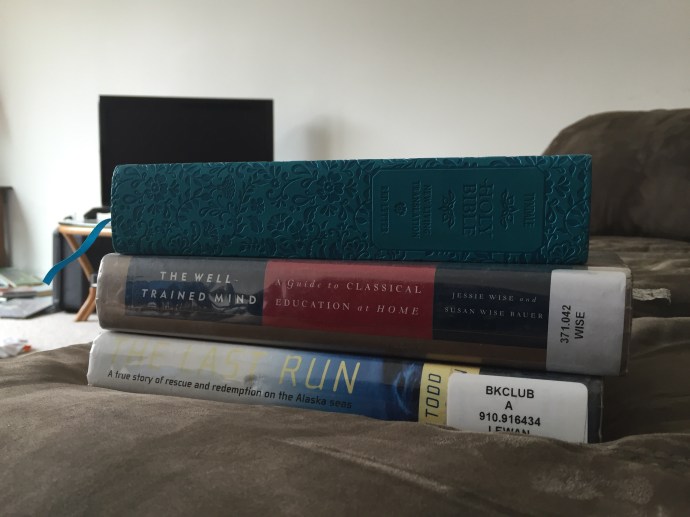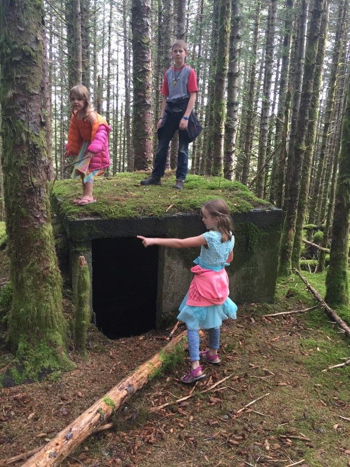 It rained most of the week. We had a down day of me falling asleep on the couch after work and not getting out of my uniform until after 3:00pm, that’s embarrassing. The next day it was still raining we slept in and then visited the library to restore our book stockpile. The kids signed up for a beach art class and the librarian asked Caleb if he would be around for the school year since she had a friend who would be teaching a Lego robotics class during the school year that she thought he would enjoy. That would be cool…maybe they have something like that in Salem. We do love this place. Granted, we have not been here in the winter, but if we did not have so much family and a home in Oregon we would be more than tempted to stay here. We went home and read most of the rest of the day away thinking that maybe perhaps the next day would be a little dryer and the forcast gave us some hope. The next day Chad admitted to being a little stir crazy and there was a break in the weather so we headed out with the fishing poles stopping at McD’s for lunch it started to down pour. So instead we decided to look around Ray’s which is an outdoor sport store. I was able to talk a while with Suzanne, but Eve was over tired from keeping herself up too late at night and her behavior just not acceptable so we had to move on. Caleb found some awesome tackle boxes that he bought for keeping his legos organized and then promptly filled them. They were the perfect size and he thinks that he will be getting more of those for organizational purposes later. We went home and Eve took a nap. The rest of us read more. I have three big books on my plate and am a slow reader. Besides the Bible which both Chad and I are reading through on a three month program (that is a lot of reading every day) I am also working on “The Well Trained Mind” by Jessie Wise and Susan Wise Bauer to help me make school plans for this year and “The Last Run” by Todd Lewan which is a true story about an Alaska seas rescue.