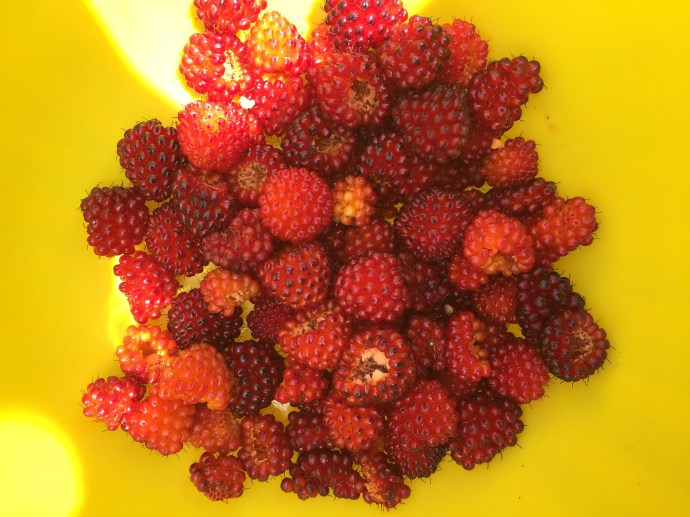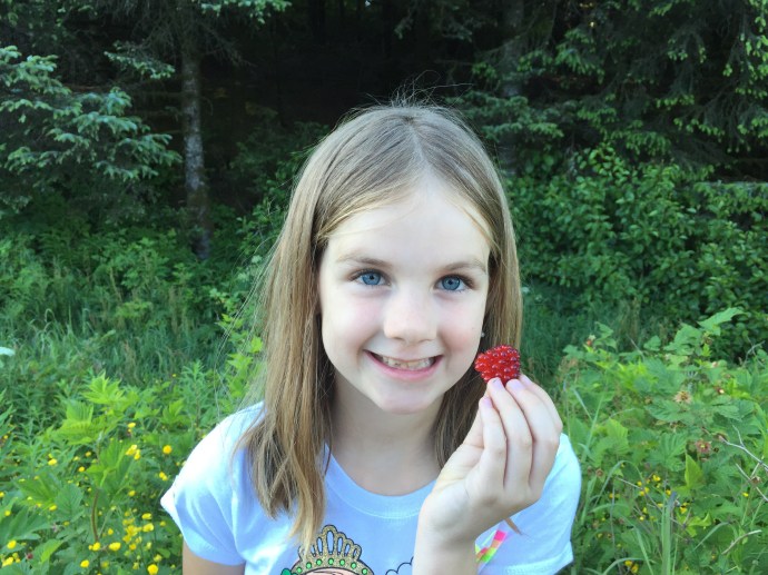 We then headed to Safeway to get the fixings for our salad (dark romain, feta, apples, and chopped walnuts add to that the salmon berries…I know you are all drooling. Don’t worry it was good and we enjoyed every bit of it.).