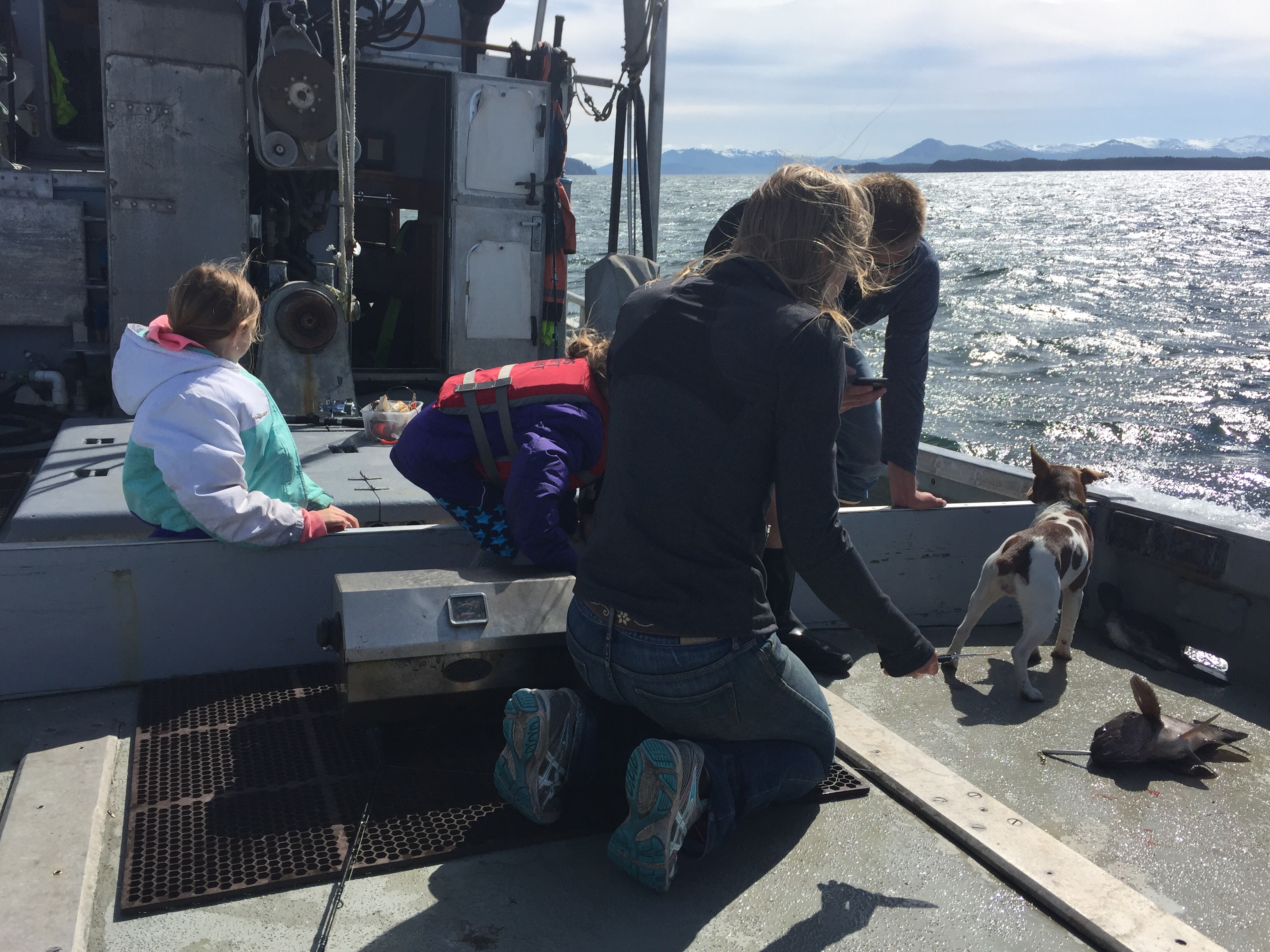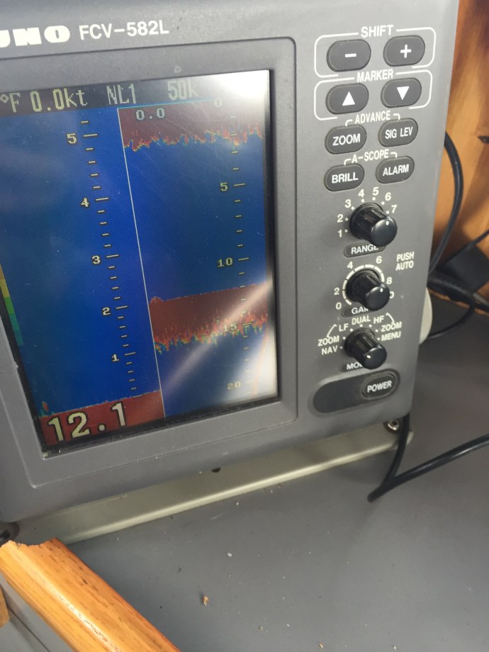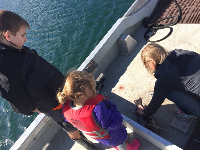 Now that is fresh fish!!! We pulled into a cove on Long Island where we were protected from the wind (which was blowing at 30 knotts). Caleb and Eve kept fishing even though there are very few fish in that cove.