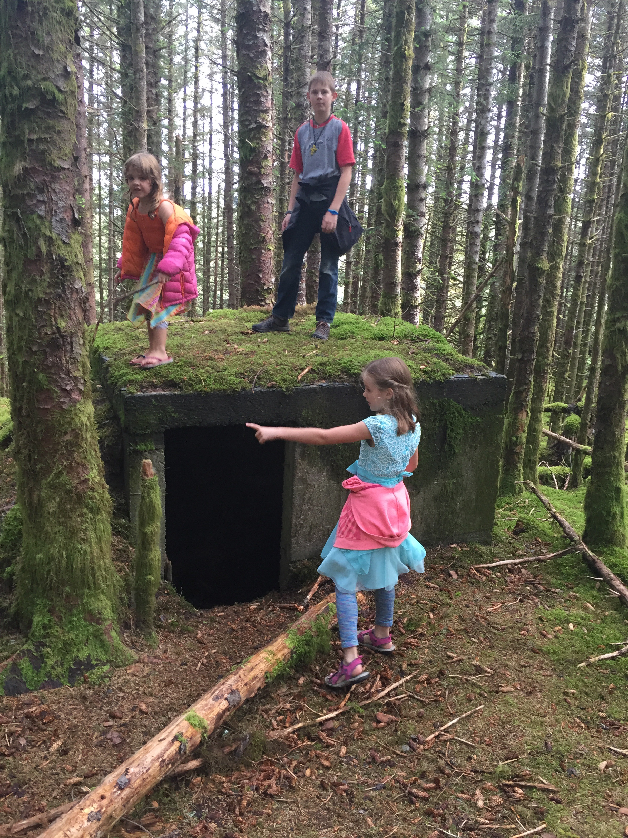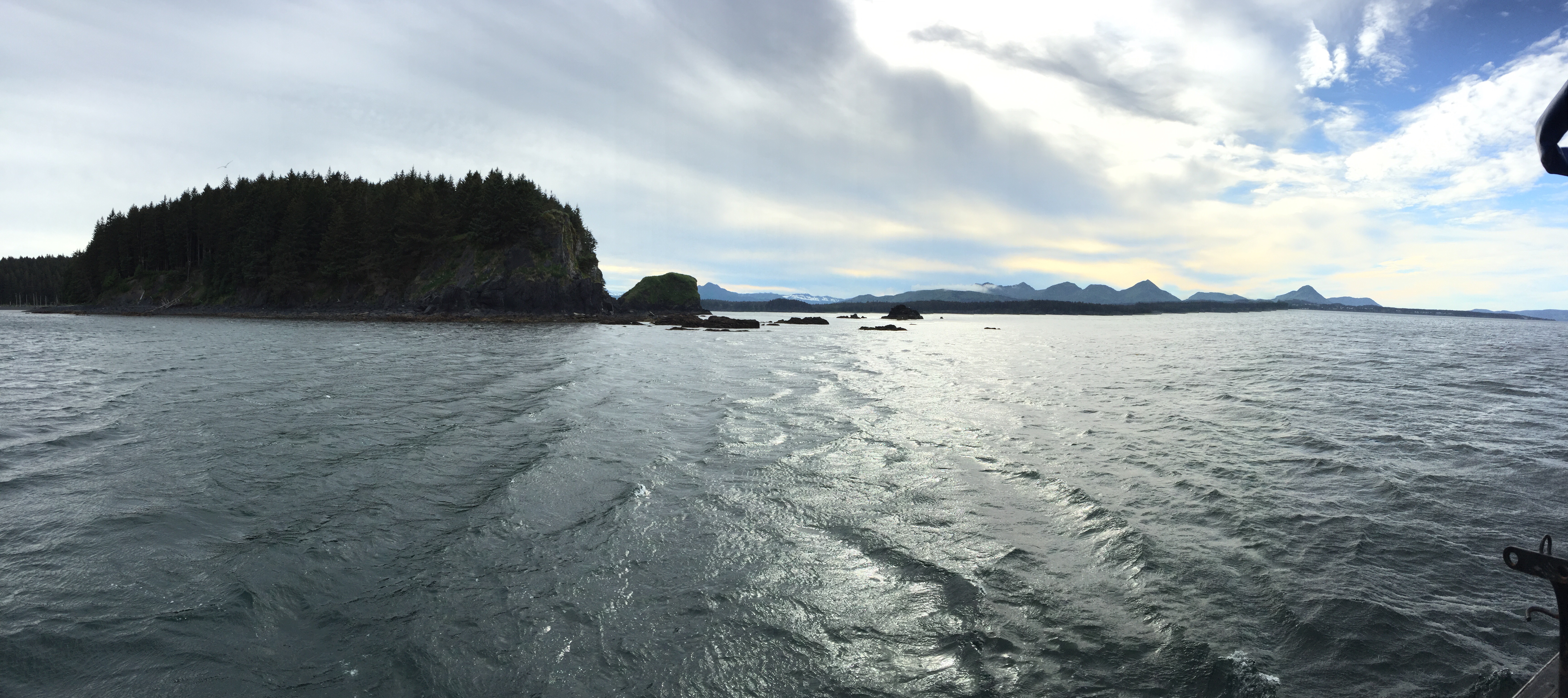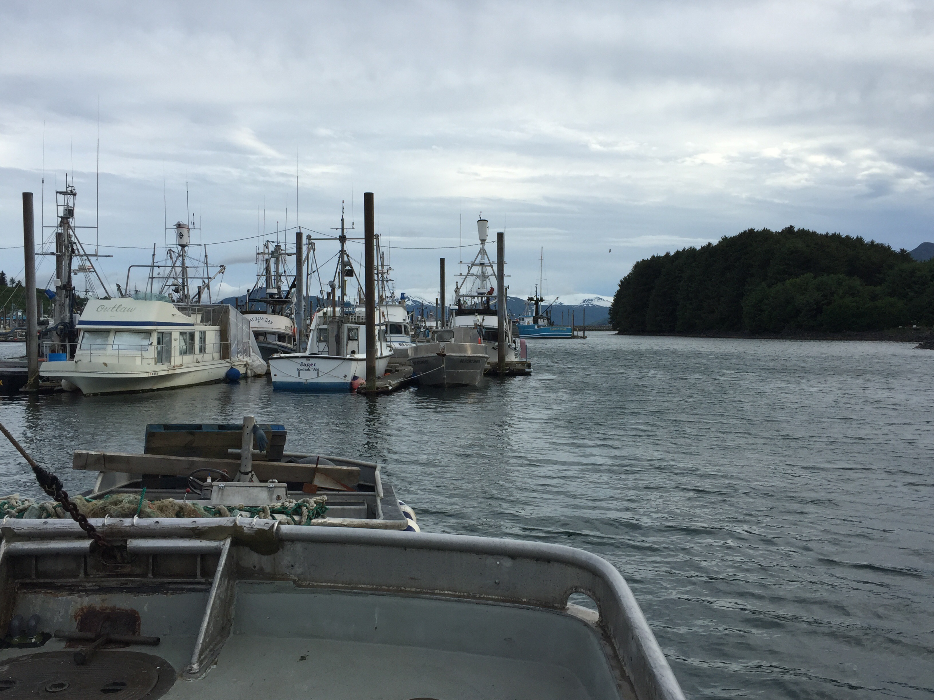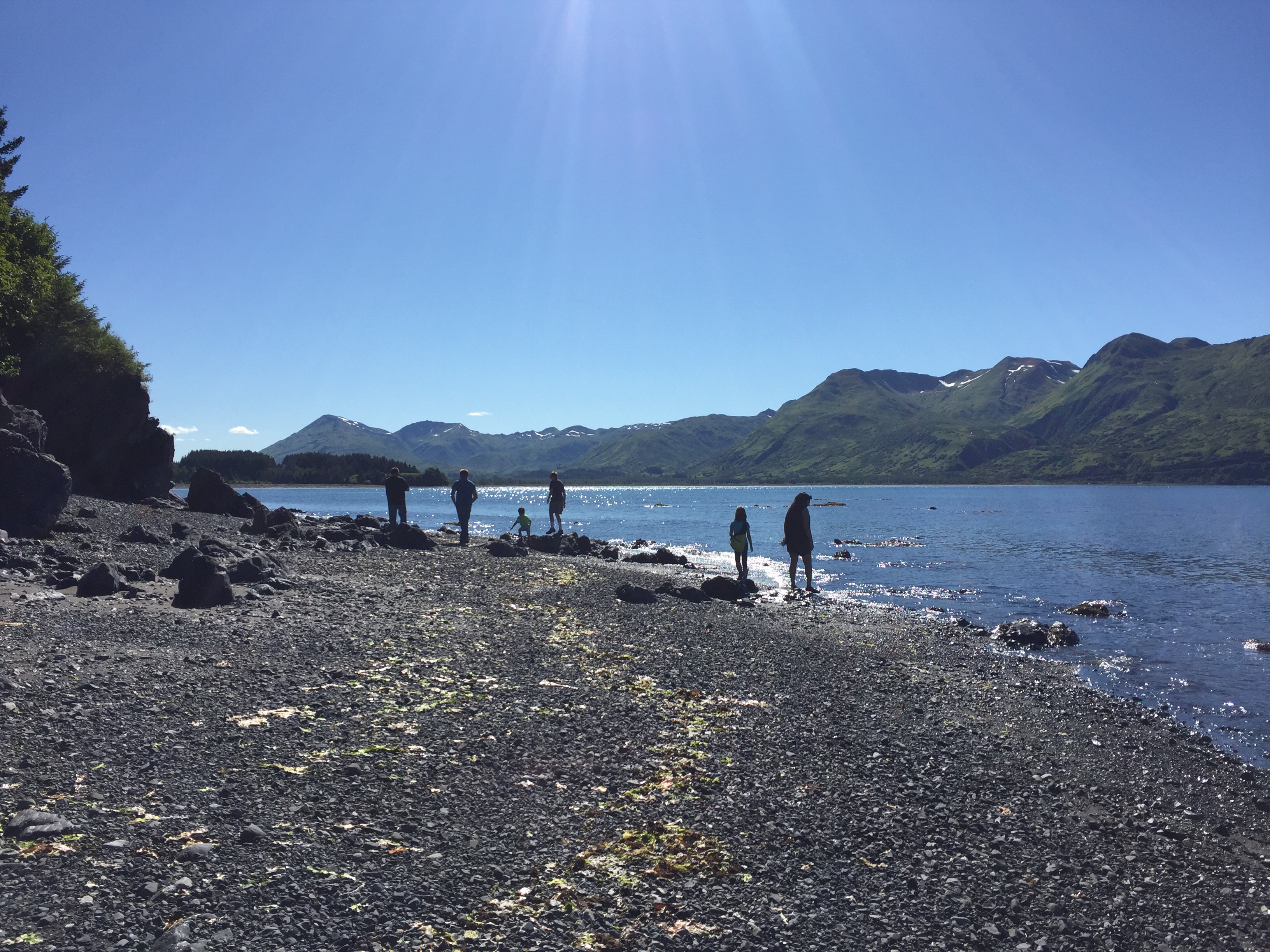 The kids were playing really well together with their favorite activity being jumping off the stumps around camp into the tall grass. Around 8:15pm in eagerness Logan gave Eve a push off the stump before she was quite ready and she landed wrong. She was crying pretty hard, but her arm was still pretty straight so we iced her arm and gave her some ibuprofen. She sat in my lap and after a bit of crying fell asleep. She woke up before we left and was for the most part ok as long as there were no position changes, but if there was a change in position or anything touched her arm she would scream. At that point we knew we would be making a very late night trip to the ER. The sky on our way back to Kodiak (1hr drive). Taken about 11:45pm.