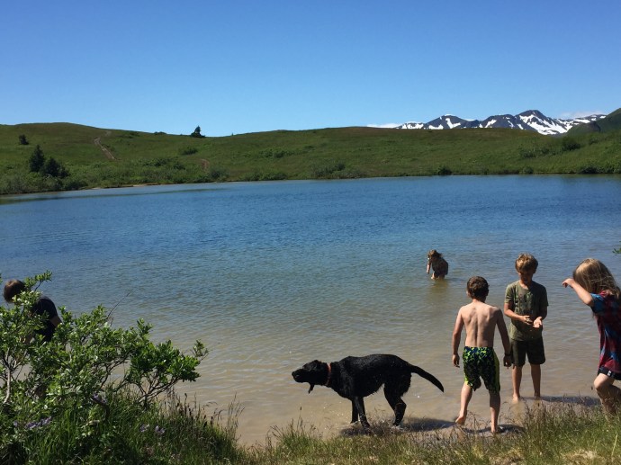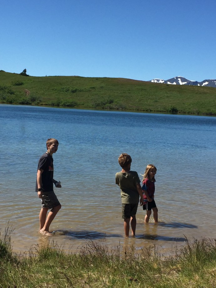 Isn’t this the sweetest little lake. We loved the hike up to the lake it was beautiful. It was so sunny and nice and it was tucked down from the summit enough that it was protected from the wind. The kids played, we picnicked, and then took a little nap in the sun. We could have stayed all day.