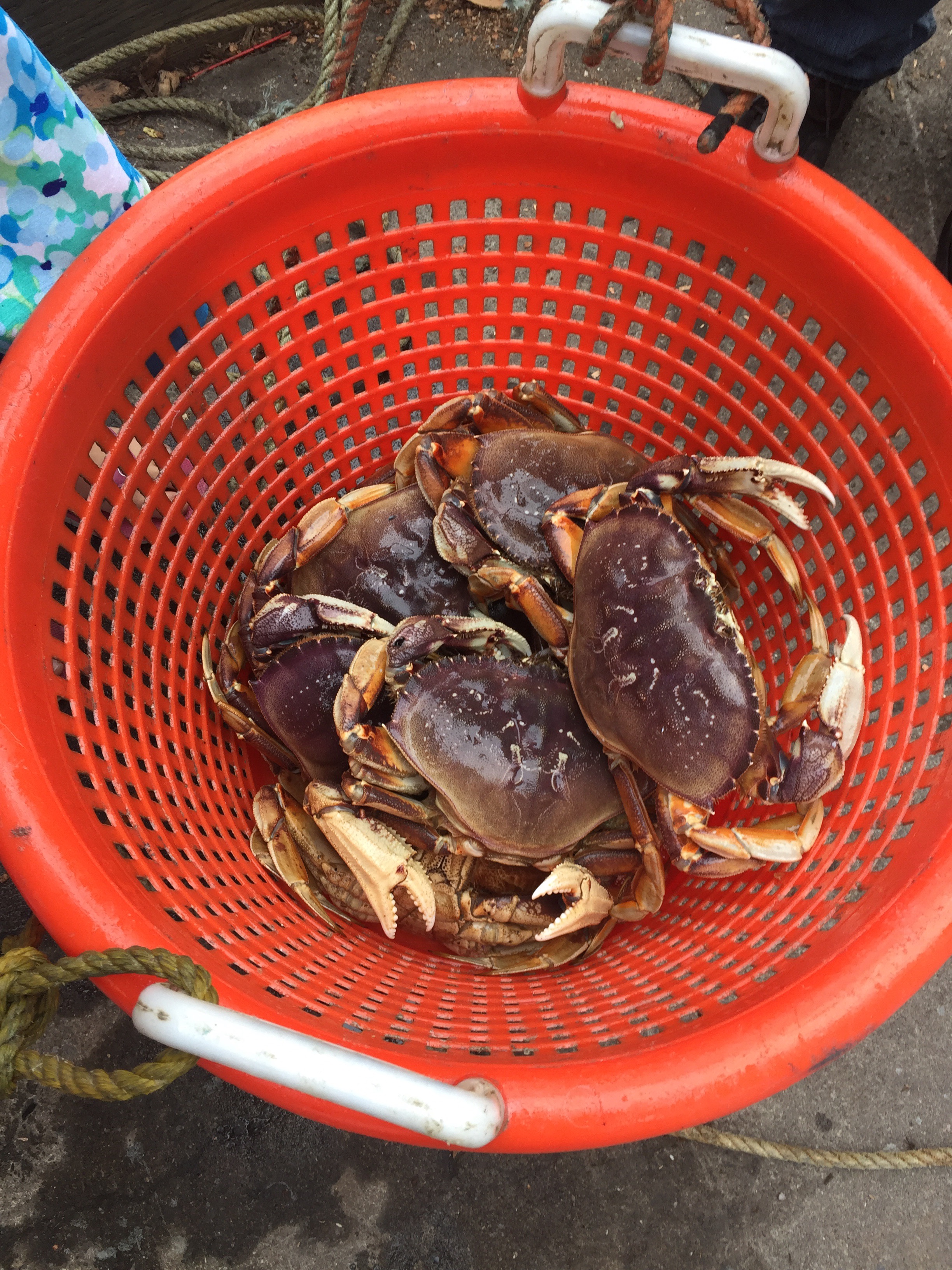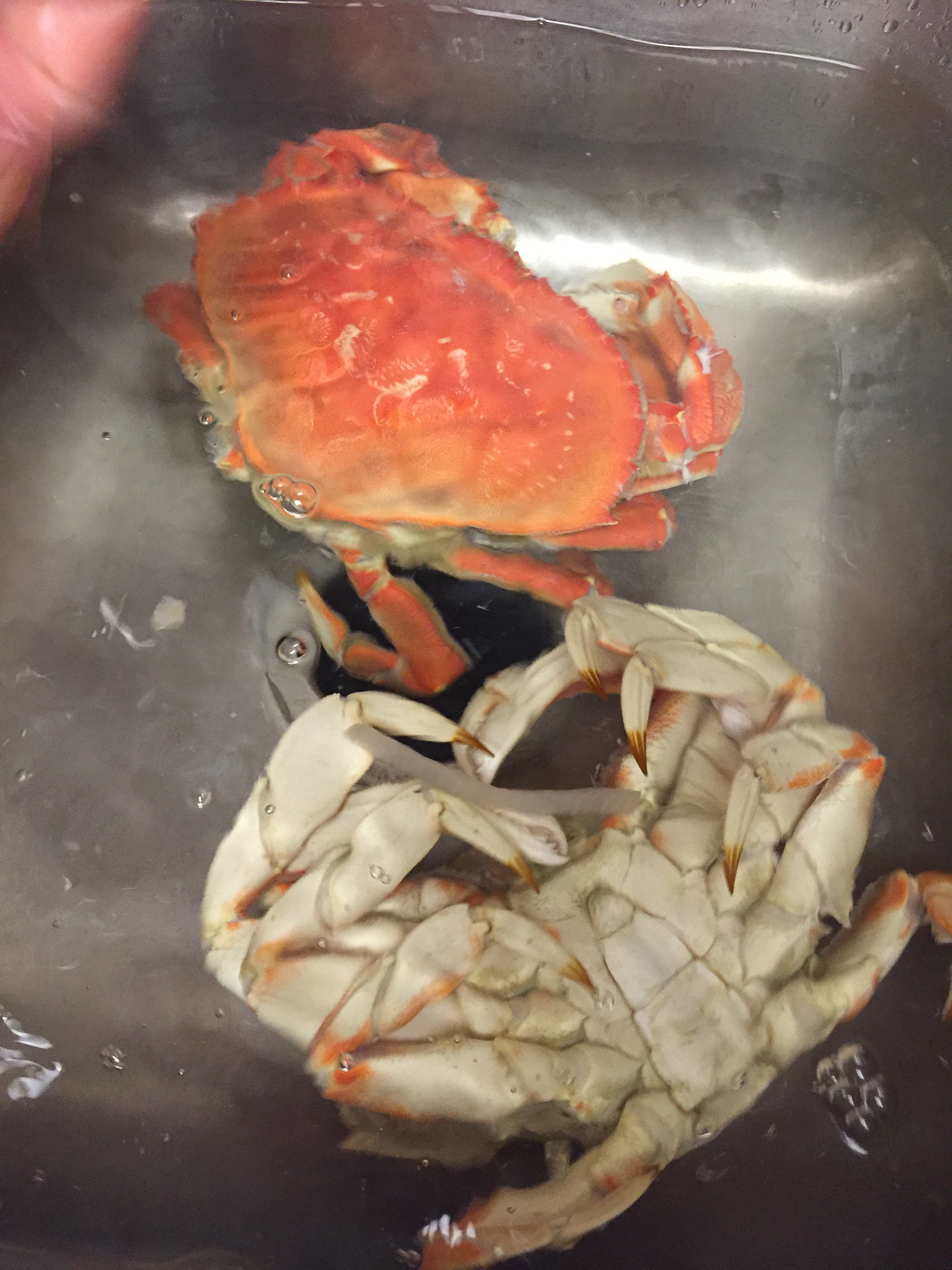 The bag contains the shrimp and clams (not fresh local, but frozen from Safeway due to the recent health hazard warning for local). The crab was bright red after cooking, no longer deep purple.