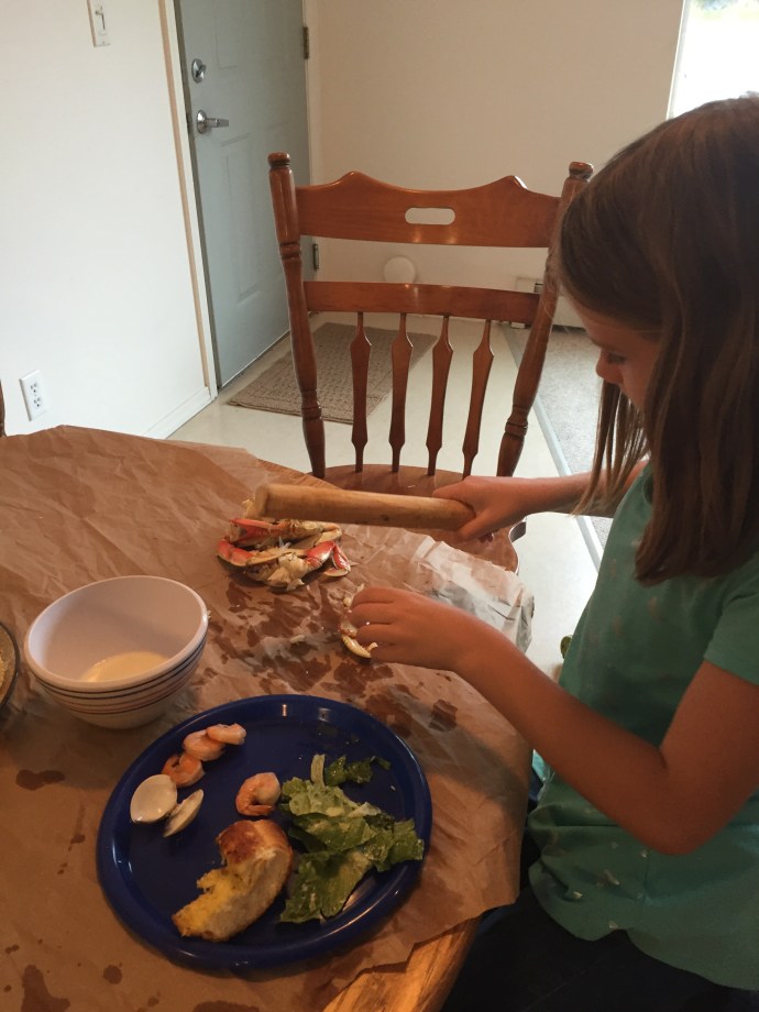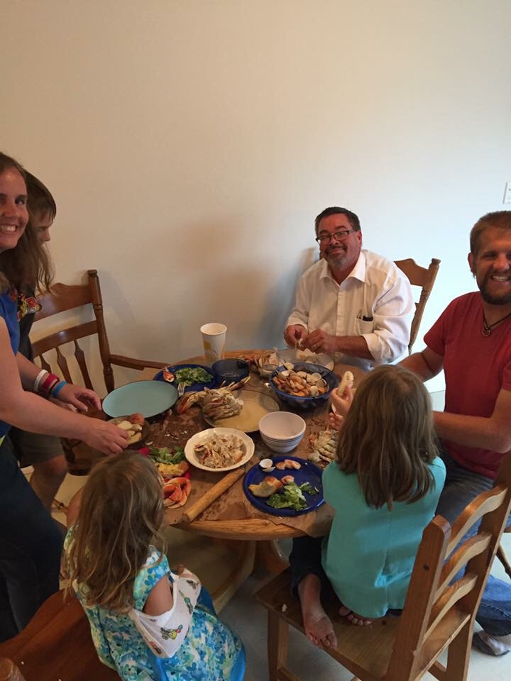 It was so delicious. We had a whole crab each plus the other fixings, salad and garlic bread…we were all stuffed with much left over. There wasn’t many pictures of the actual meal since we were all busy in preparation as well as shelling crab for the little ones. It was such a blast. We all forgot that we had even felt too tired to get together. We were able to pick up the crab a half hour early and didn’t keep anyone up too late. Infact, Chad and I stayed up watching some “Friends” after the kids went to bed. Thank you Lord for your reminder to be thankful, good friends, crab, grad school acceptance, and getting to bed early enough to get a full night sleep! 😍 We love you!!!