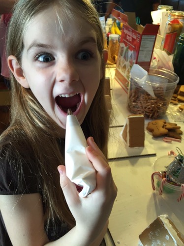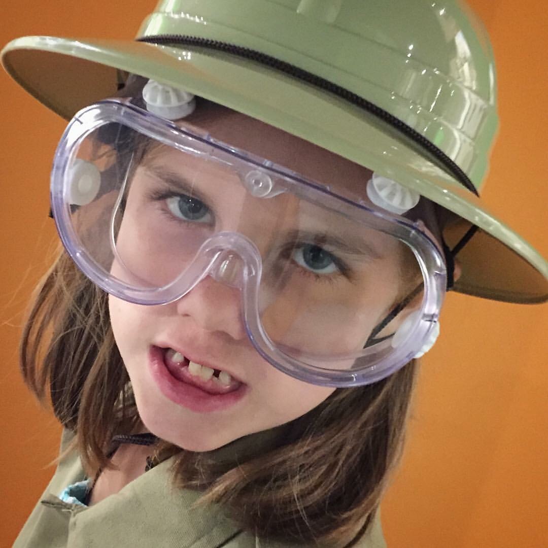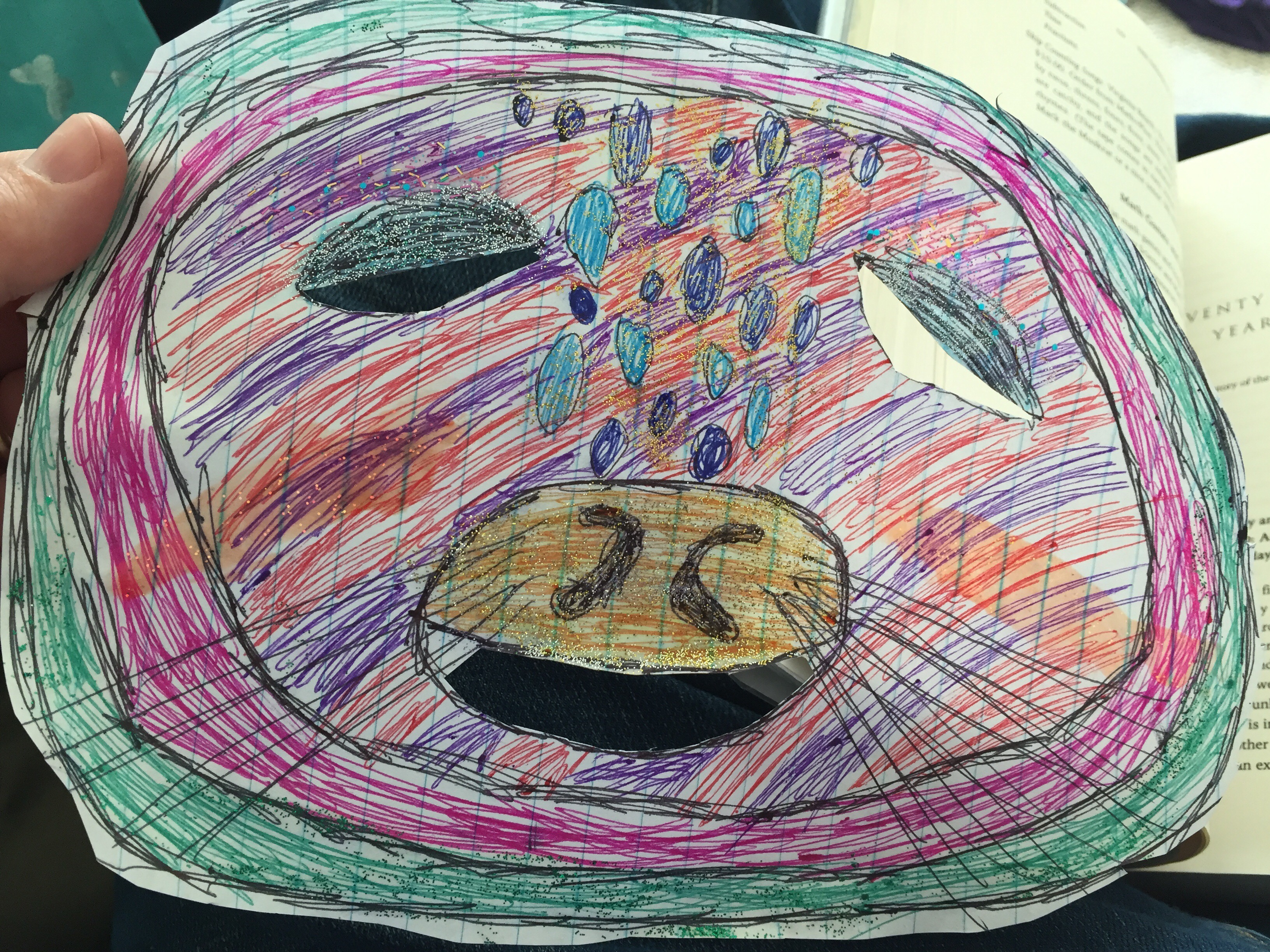 The kids made Alutiiq masks here is Hannah showing off her seal mask!