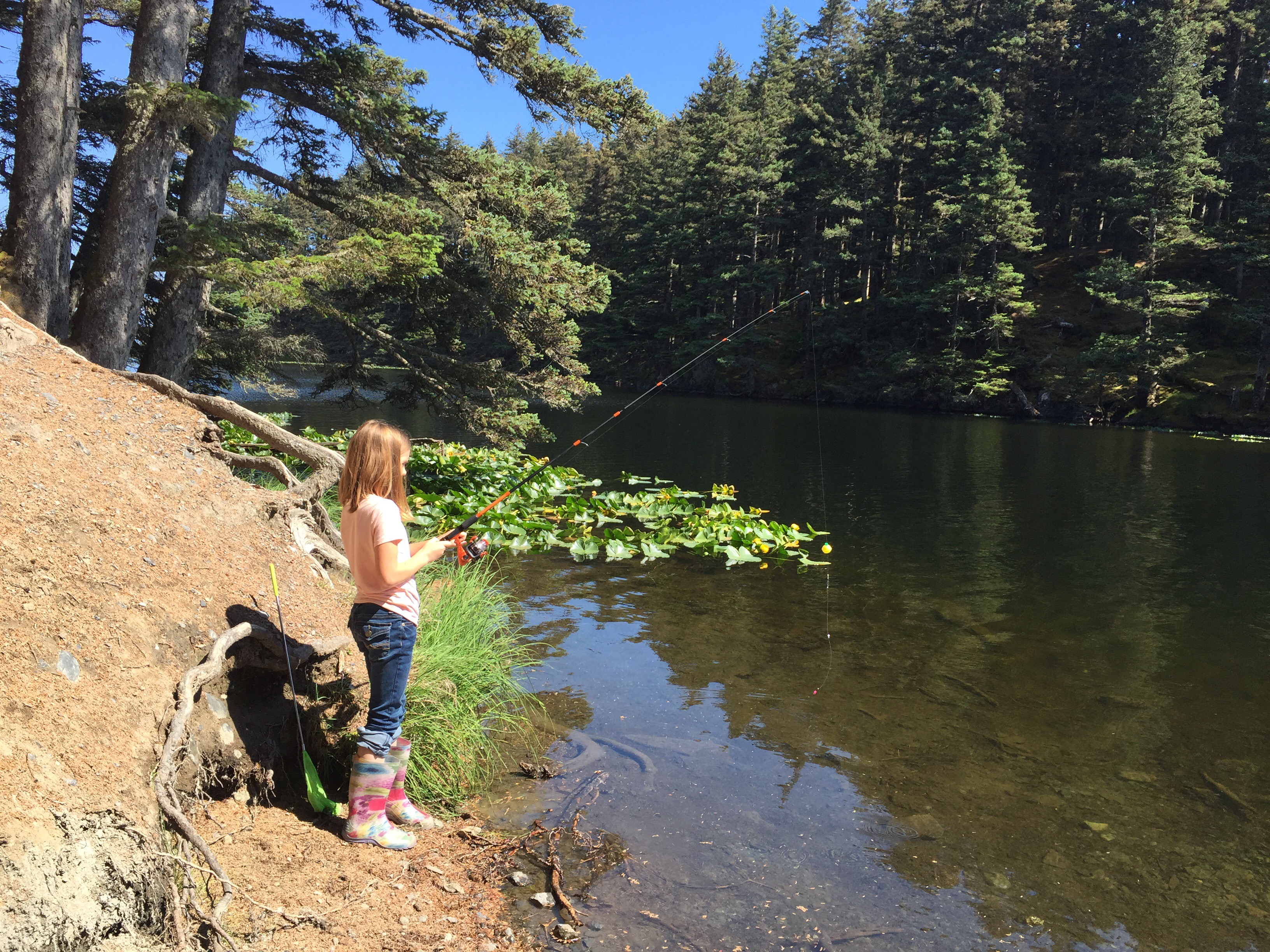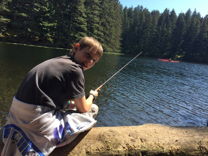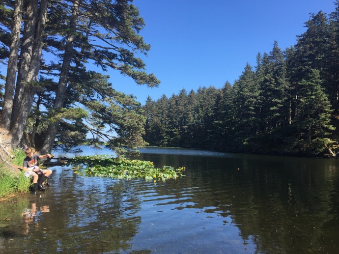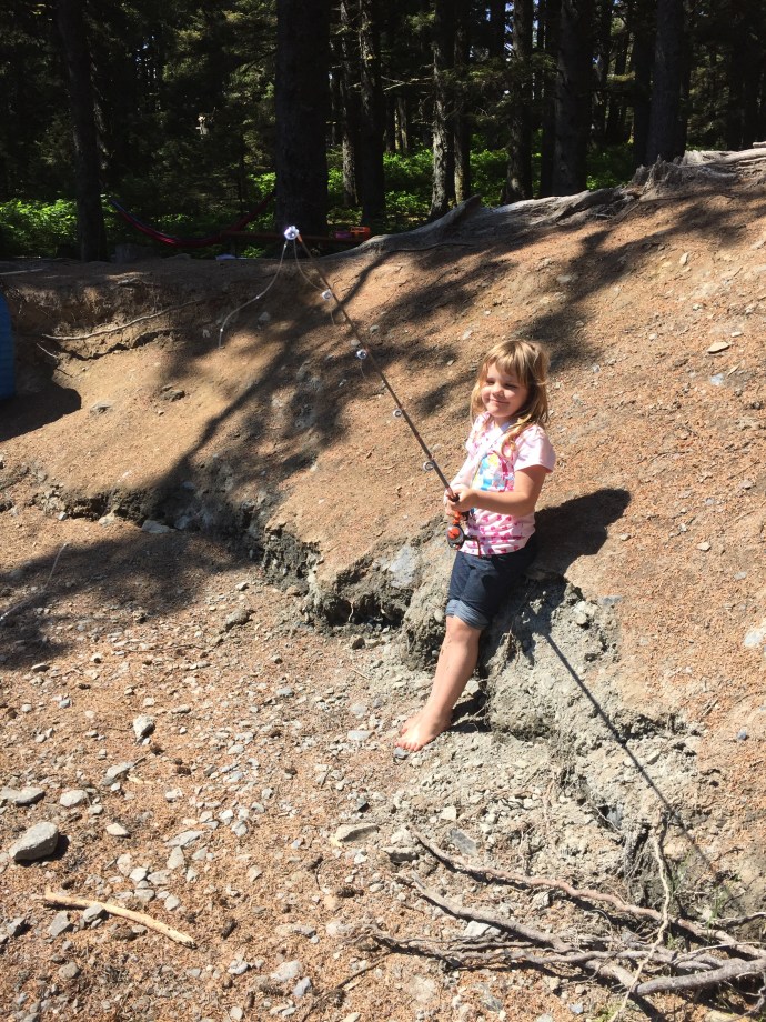 On the 2nd of July I was able to get my second day of med/surg orientation in. I actually enjoyed it. The other L&D nurse on said, “They are going to make a med/surg nurse out of you after all.” Ha ha it isn’t that I didn’t like it to begin with, I just LOVE my pregnant laboring mamas. Last week another nurse had asked me to work her Wednesday and she would work my Sunday so that she could go on a dinner cruise. I didn’t have anything planned and it would allow me to go to church. It sounded like a win win. An hour nap before church was kind of a tease, but I will pretend it kept me at least had way functioning. It was announced at church that they would be having a BBQ and fireworks on the beach out in Chiniak around 7pm. It sounded like a late night, maybe too late. We already had afternoon plans that we weren’t going to break. I guess I can sleep in the car out at the beach if need be. We stopped at Walmart on the way home and picked up salmon eggs and some extra weights for fishing. We quickly made egg salad sandwiches, but not quick enough soon the powers family was over and we were no where near ready. They helped us peal eggs and soon we too were ready. The plan was to go to the stocked Abercrombie lake. The sun was out and beautiful, it couldn’t have been a better day for it.