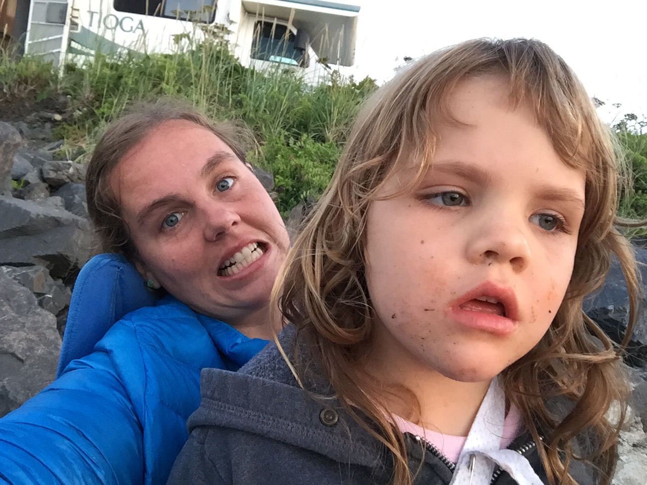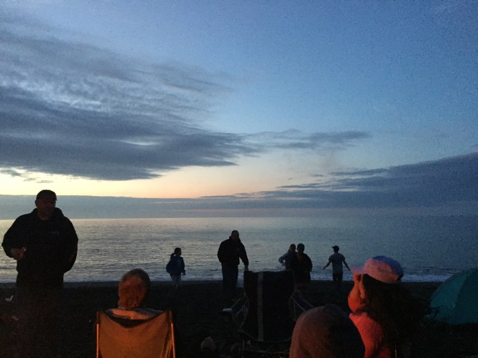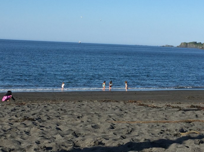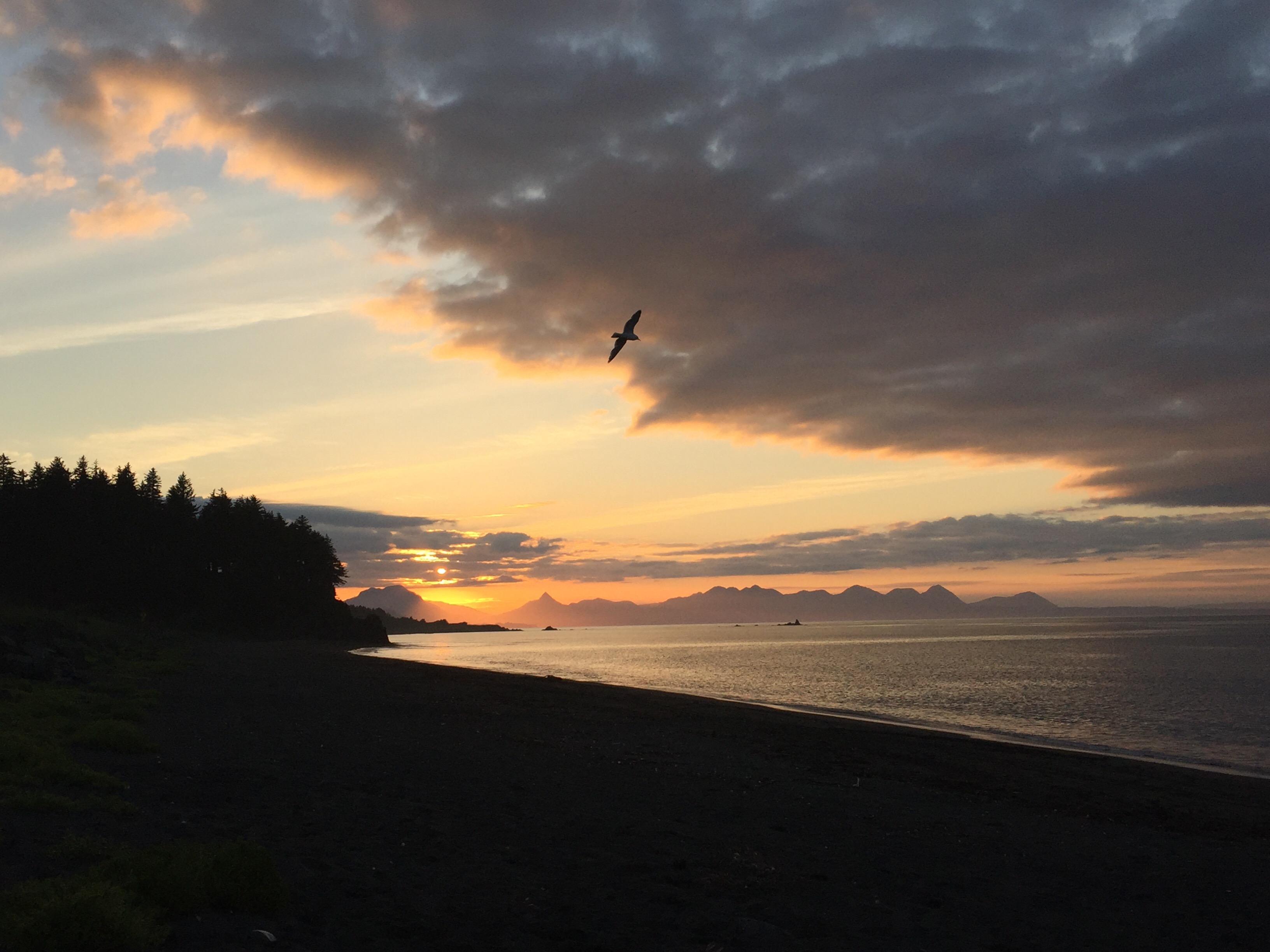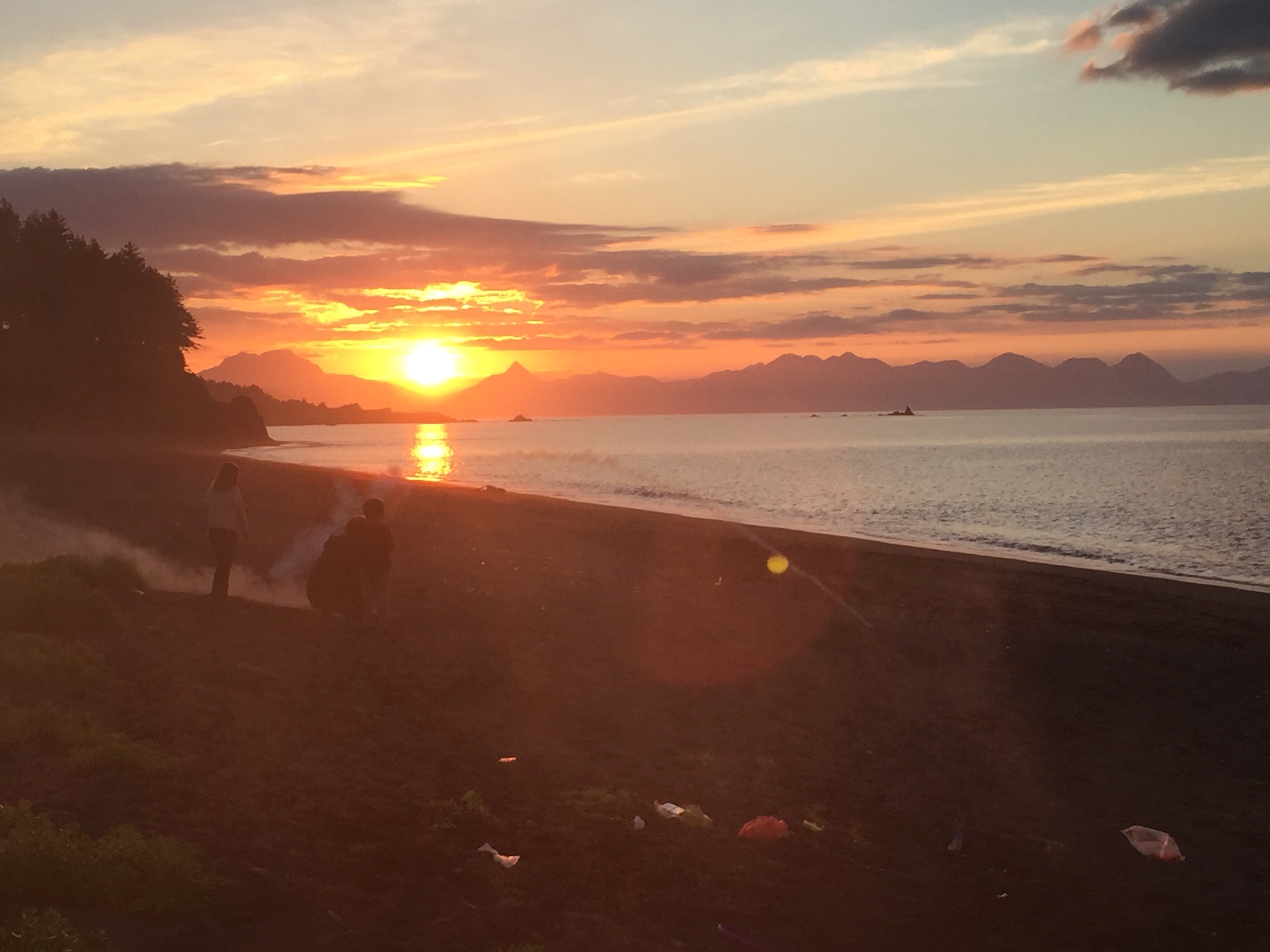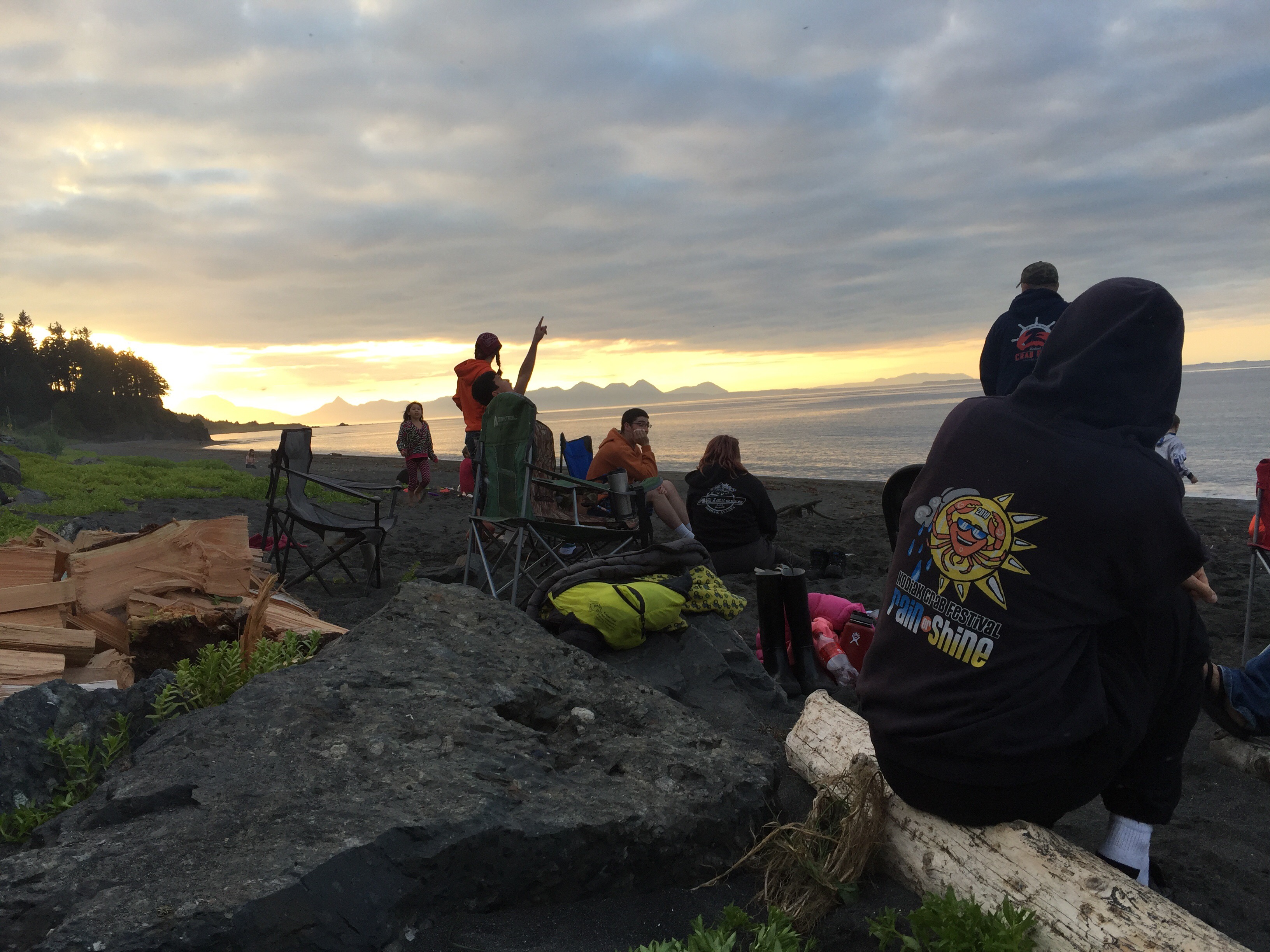 Yes, they are in swimming suits and they are swimming in the nice warm Kodiak Alasaka ocean water…😱. Brrrrrr! Eve was not supposed to be swimming but of course she “fell” in. Her splint doesn’t seem too worse off for the wear. The sunset was to die for.