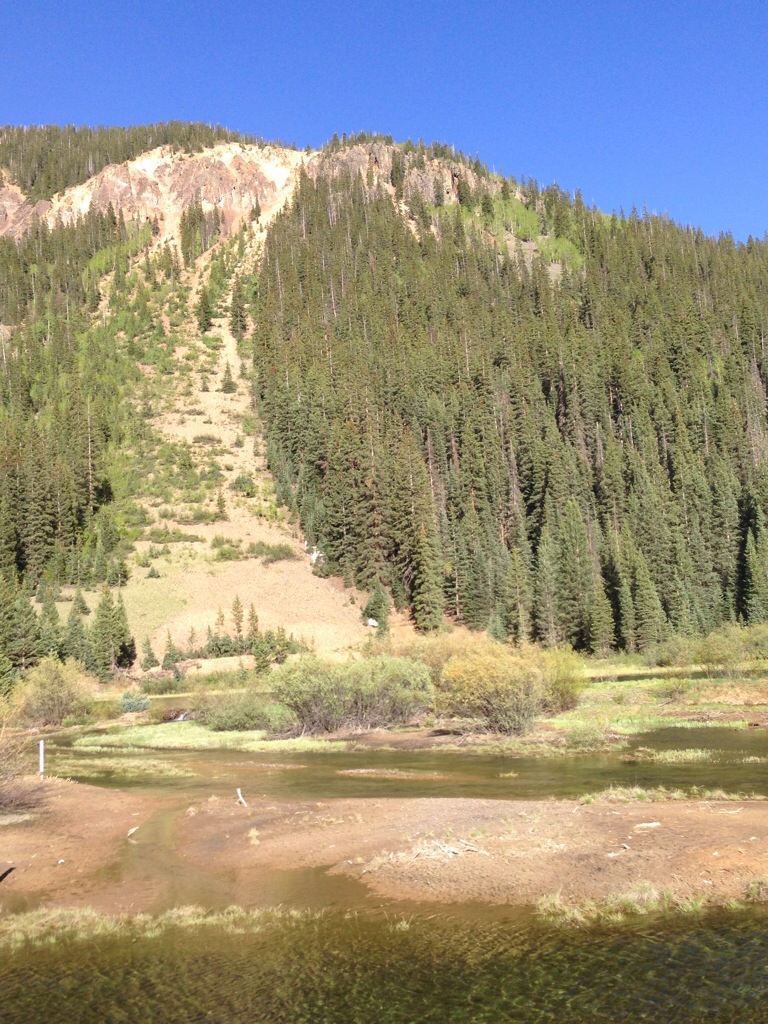 We stopped on the scenic overlook at Pagosa Hot Springs. The kids spent a good half an hour playing on the rocks and in the hot and cold water pools which on the side of the river we were on were only ankle deep.