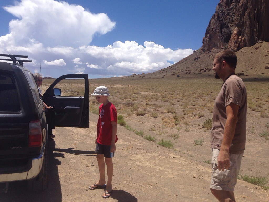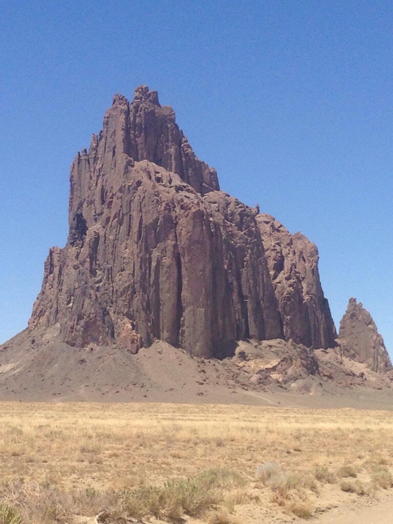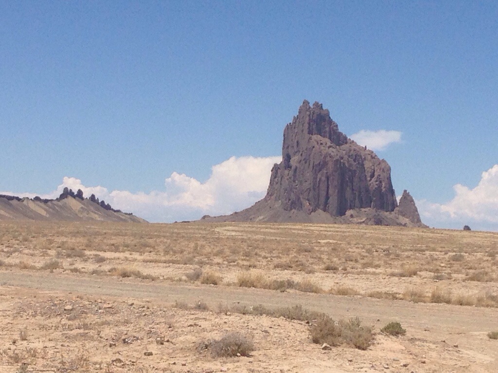 When we had seen the entire market thoroughly we left heading south towards Gallup a short ways. We wanted to drive up to Shiprock the geologic feature that the town was named after. We had driven around it before but were unsure of we were allowed to drive the dirt road that lead up to it. I had since asked at work and assured that we could drive up to it but not to climb on it at all for it was sacred to the Navajo people. Wanting to respect that we were careful and stayed on the dirt roads and did not climb on or touch the rock.