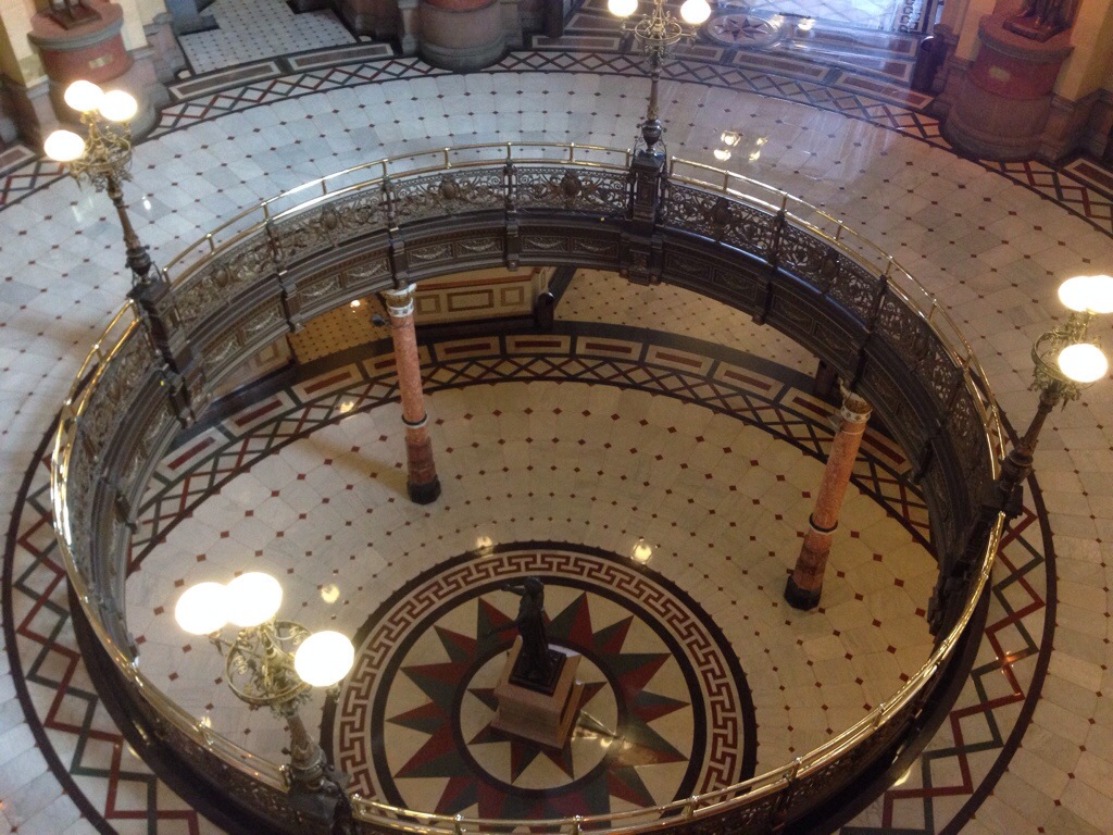 This tour was focused on the purpose of the building, not the workmanship, art and materials that went into making it what it is today. Built in the late 1800’s, it cost 4.3 million dollars to build, in comparison to the Missouri Capitol building built 50 years later, which cost nearly 1 million less to build. I do have to admit, there is no comparison visually when describing the inside of each.