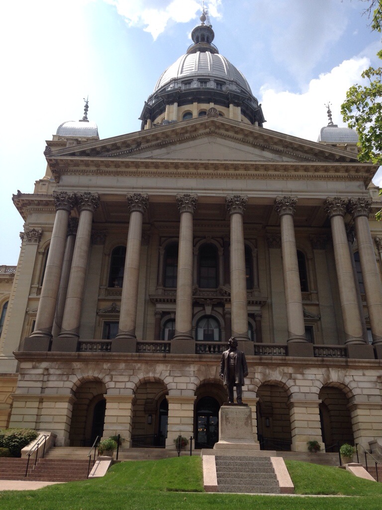 The street view of the Capitol is less impressive, and we found the silver dome rather intriguing. Who do you think would be the statue out in front of the Illinois state capital main entrance? We are in the land of Lincoln, coined on each license plate. Well Stephen Douglas of course!