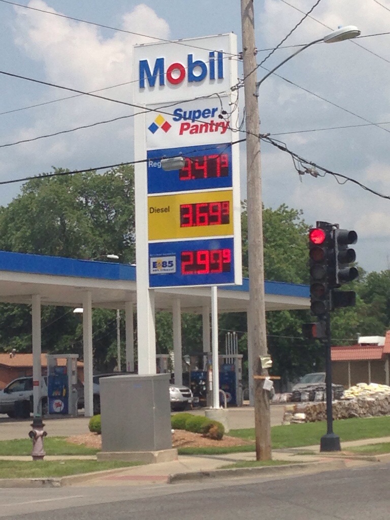 As we are in corn country, so more ethanol is added to the gas, lowering the gas prices.