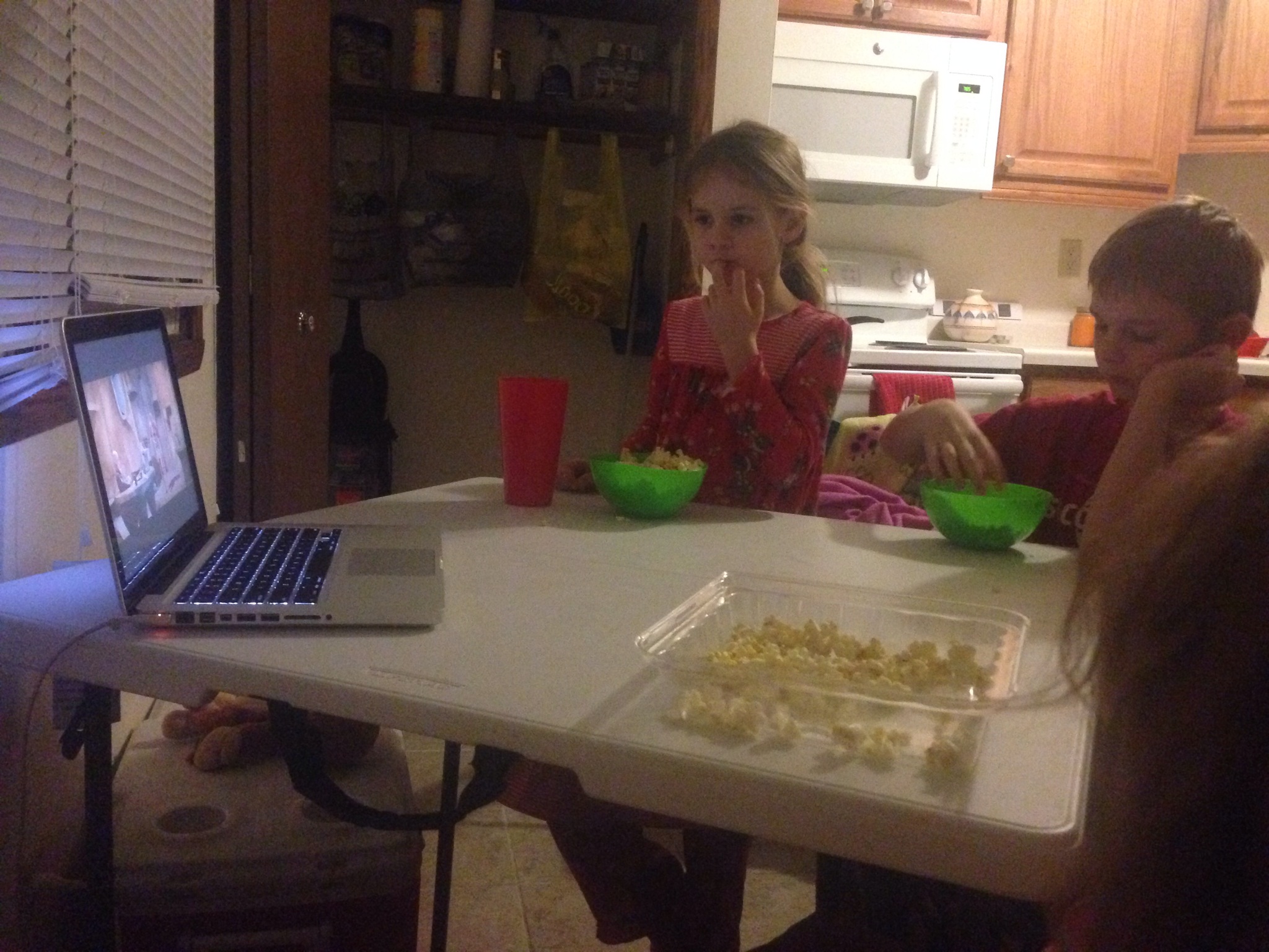 Chad dug out the seeds and prepped the pumpkin for carving, Hannah, Eve, and I separated and cleaned the seeds so they could be roasted. Then Caleb and I worked on the carving while Eve and Hannah popped out the pieces and collected them for disposal. Chad roasted the seeds and by the time the pumpkin was done and lit, the seeds were toasty and tasty. I love watching the kids enjoy and admire the pumpkin. We may or may not have eaten almost all of the seeds already, only a handful is left and that is because Hannah asked us to save some more for her for the morning.