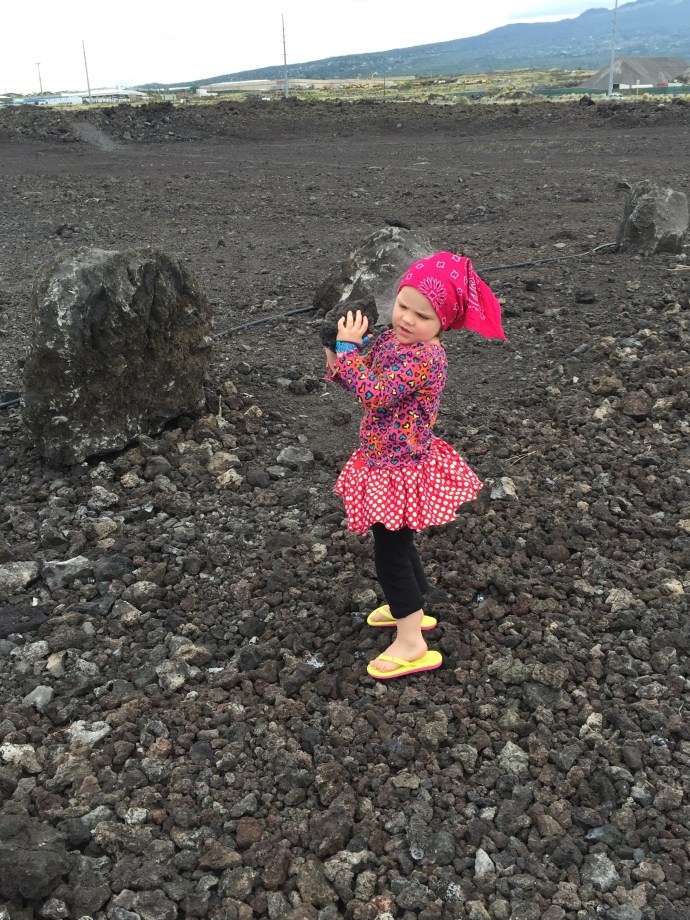 I am disheartened after writing quite a bit of this post just to have it deleted so hear goes round two most likely more brief. When we woke up this morning we really didn’t have any kind of plan for the day but we know from experience that three months isn’t long enough to really waste any time and still see the things we hope to see while we are here. We thumbed through the guide book and decided to see another one of the national parks that just happened to be near Kona on the other side of the island. We were driving along just minding the GPS when we saw a sign for a black sand beach. Although we have seen black sand we had not yet been to a black sand beach and it was on the top of Hannah’s most want to do in Hawaii list, so we turned and checked it out. Panaluu County Black sand beach was a hit. The smell of BBQ was in the air. Hammocks hanging on the coconut palms.