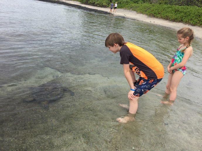 We didn’t touch the turtles but they swam up to the kids and around them slowly minding their own business with out any fear.