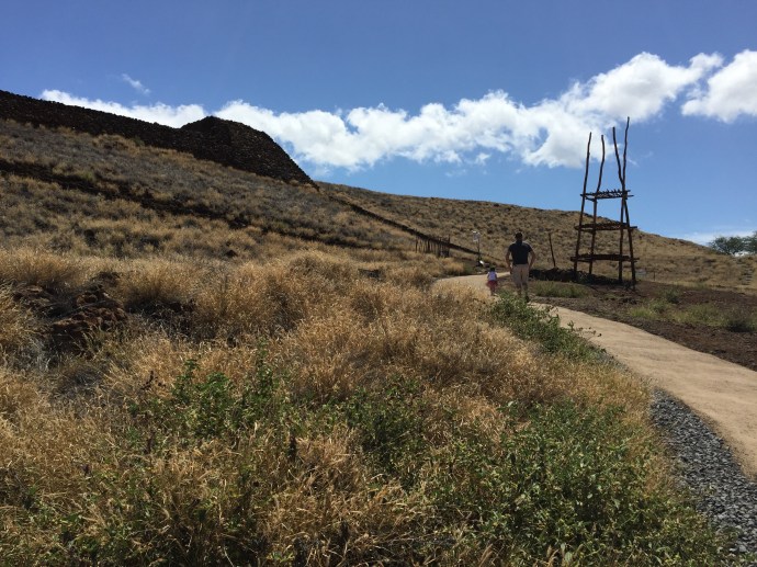 Kaloko-Honokõhau National Historic Park looked like a small national park from the road and we all needed to get out and stretch our legs. The purpose of this park is to show how the first Hawaiians lived in large long homes next to the water’s edge. There were not many edible plants when they arrived and so their subsistence was dependent on fish. It was .5 mile walk down to the long houses and beach.