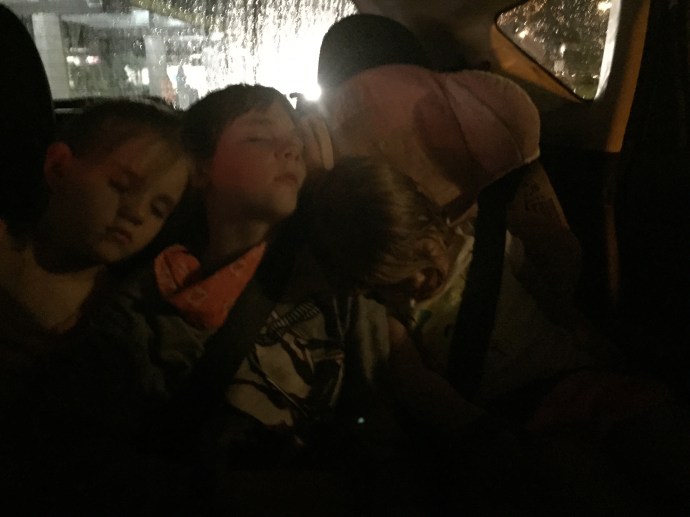 Entertaining the kids in the car: we want the kids to be looking out the windows a lot and we also want them to learn how to entertain themselves. Chad would say that Audible has been a life saver. We do listen to a lot of audio books. The kids also have their kindles and they read. Another big entertainer is their notebooks where they draw and write stories. We watch for cool new license plates, and which house we would want to live in when we grow up. That is pretty much the extent of it. The kids would tell you that they like their long car drives because it is uninterrupted reading time that they wouldn’t get at home. There are times though, when it is particularly scenic that we make them put their books down and look out the windows.