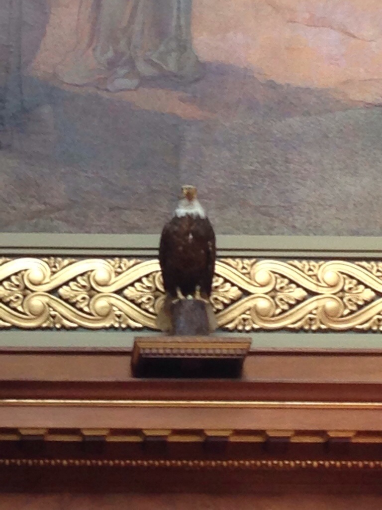 It is actually a Jr. The original one burned in the Capitol fire in 1904. But this one has been sitting on this perch since abound 1908 and is an actual taxidermied bald eagle that a farmer found dead in a field and brought in to the Capitol as a reminder of the real hero of The Civil War.