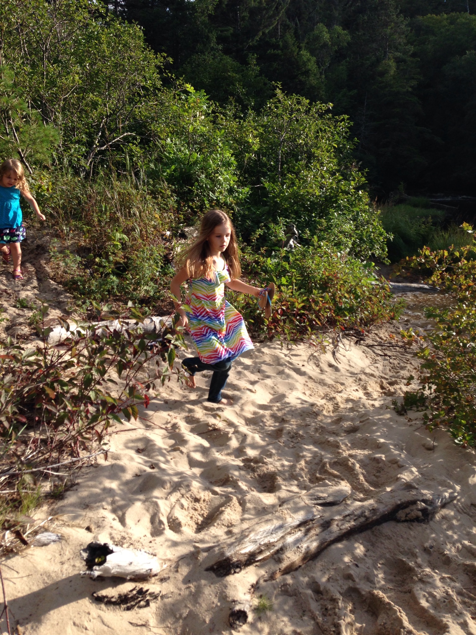 The short hike down to the second overlook made us hungry for a longer hike so we ventured further down the trail another mile or so. There were way less mosquitos (nearly none) the kids nearly ran the whole way it was so fun. The beautiful beach at the end of the trail was the best bonus ever.