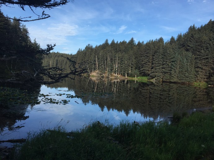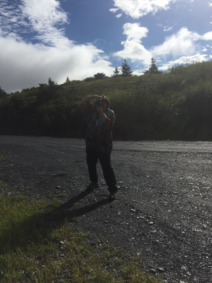 Gotta love those wild Alaskan blueberries! Dad and I stayed up late watching the sun go down over Mill Bay and then got up early and drove all over looking for bears which allowed us to watch the sun come back up in the Flatts.