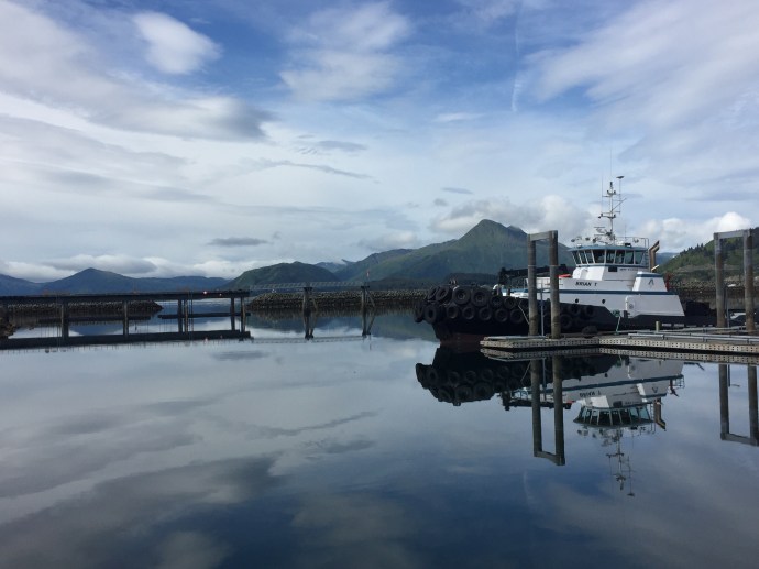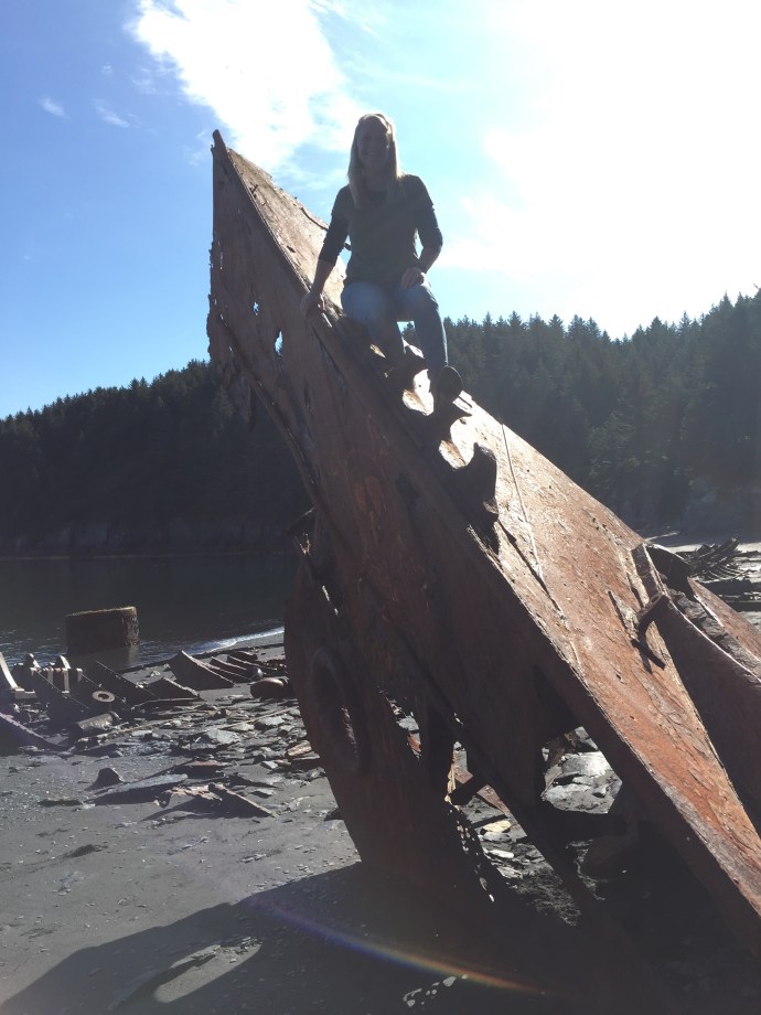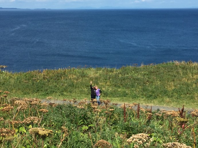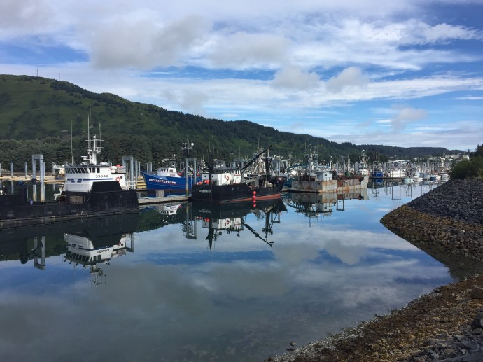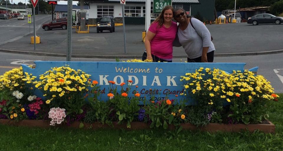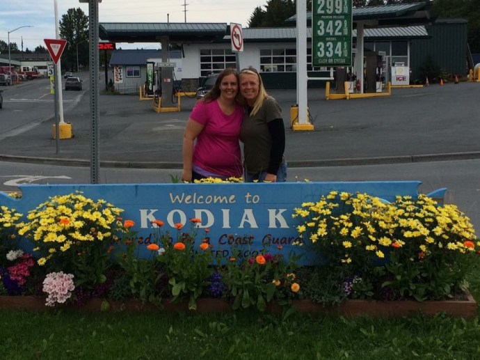 We went to Abercrombie then VFW but the photos did not come up in order the beach with the boat ruins is VFW the rest above is Ft. Abercrombie. Then we dropped off Lyli to get some sleep before work again that night. We then drove around to the Kodiak sign and took our photos with it. We tried several different restaurants before we ended up back at Henry’s for lunch. Monday and Tuesday are the days when nearly every place in Kodiak is closed. We then checked Tiffany in at the airport. They said the security checkpoint would not be open for another hour and fifteen minutes so we went back out to Gibson cove for a last hurrah.