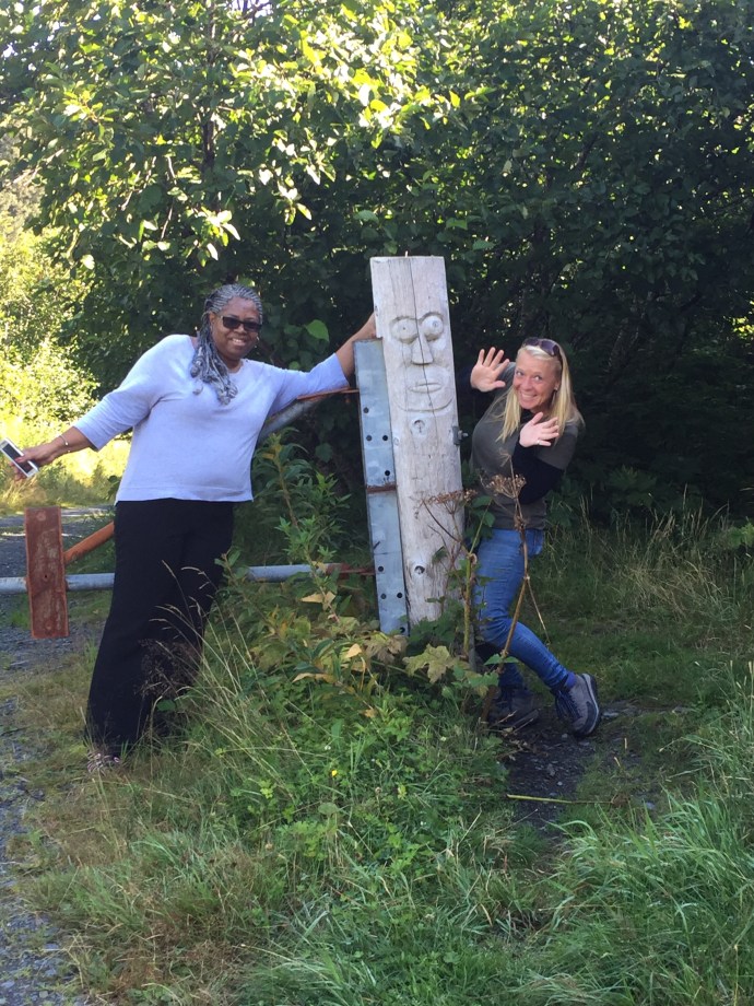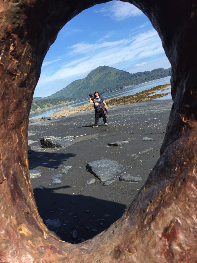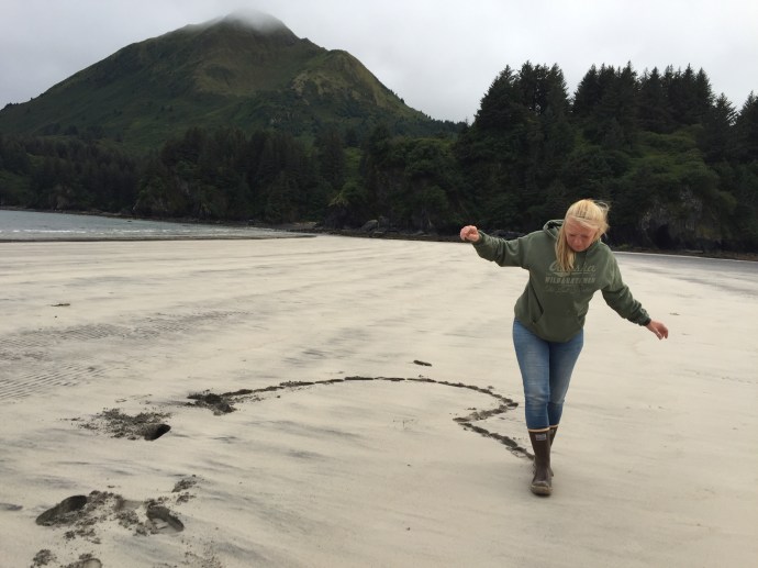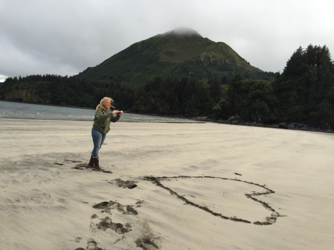 Lyli’s favorite portal for photographing visitors to Kodiak. We all took turns getting our photo taken through the portal. Fresh bear prints in the sand teased us as we all really would like to see a Kodiak grizzly bear.