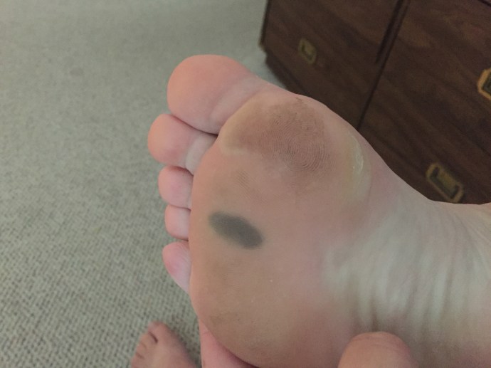 An awesome blood blister under the callus. My heals were much better after some mole skin and thank goodness for leggings I am starting to walk a little better. Those jeans and shoes found their way to the dumpster and I bought $10 tennis shoes at Walmart that have saved the day.