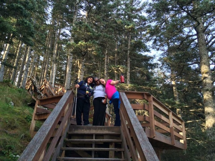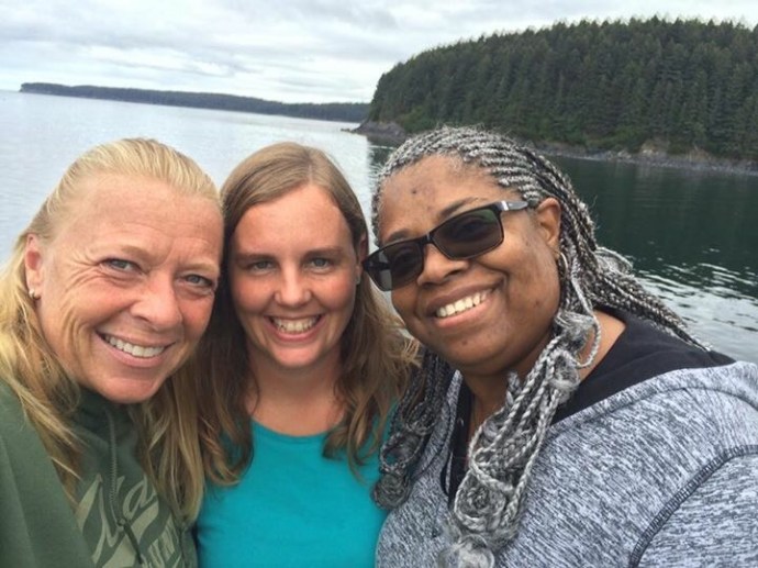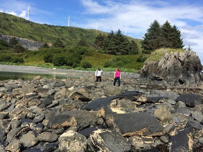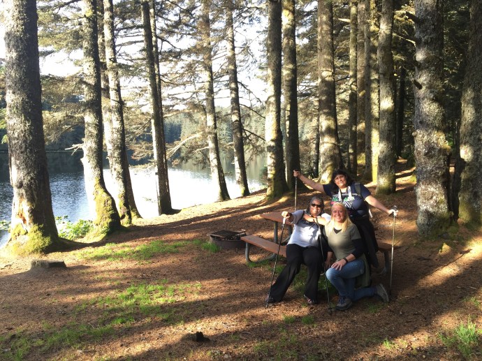 Then I went home for a nap before work and Tiffany headed out with Cheryl with out me. Work was good and I knew Tiff was in good hands. They sent me pictures of their haul of sea glass that they found at the glass beach. After work we all four of us met at Fly-by again. Cheryl and Tiffany had been out driving looking for bears since 5:30AM. After some coffee I took the van and parked it at our apartment so I could go sight seeing with them too. Lyli is working my Monday and Tuesday. We will miss her as we sight see but are so thankful that she was willing to trade so that I could hang out with Tiffany while she is here. Thank you Lyli!