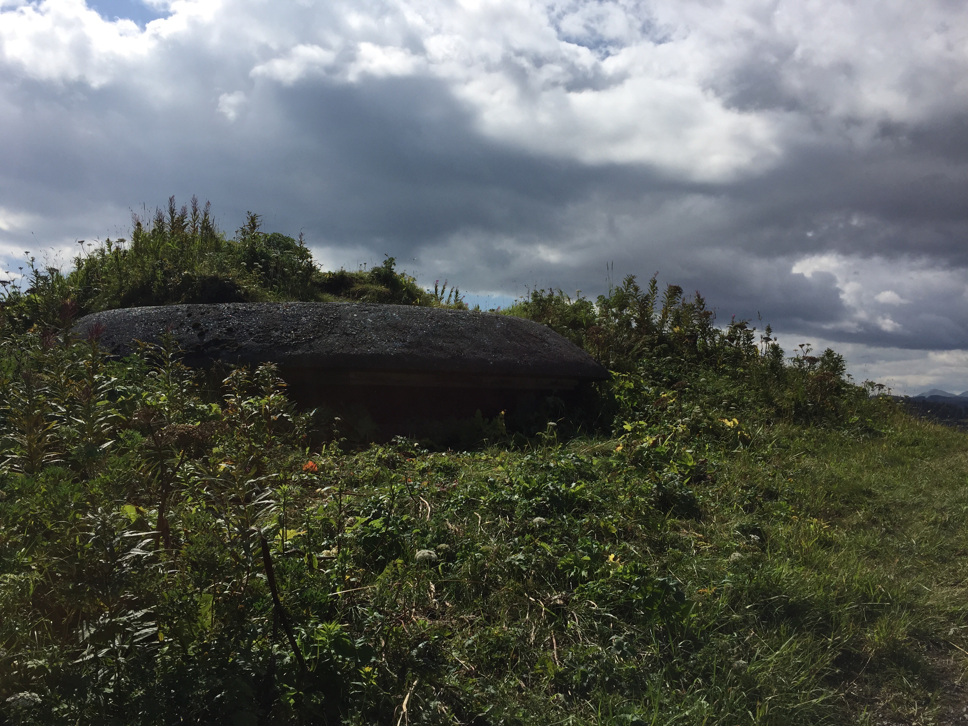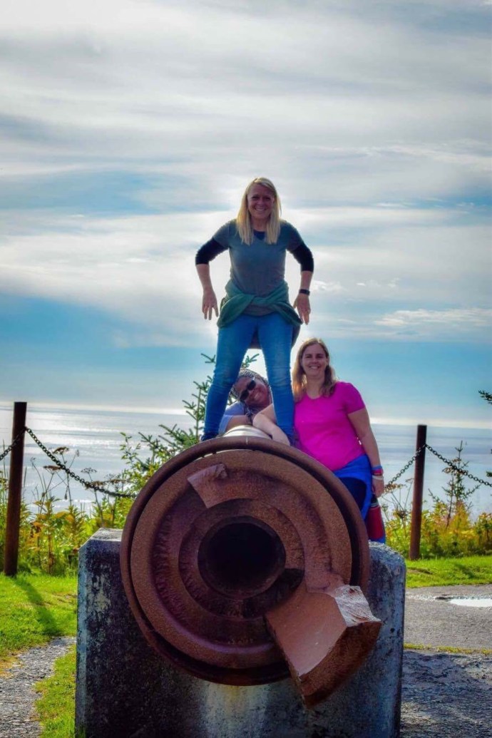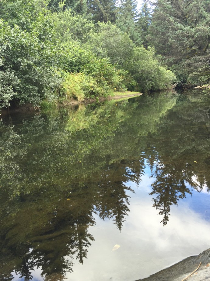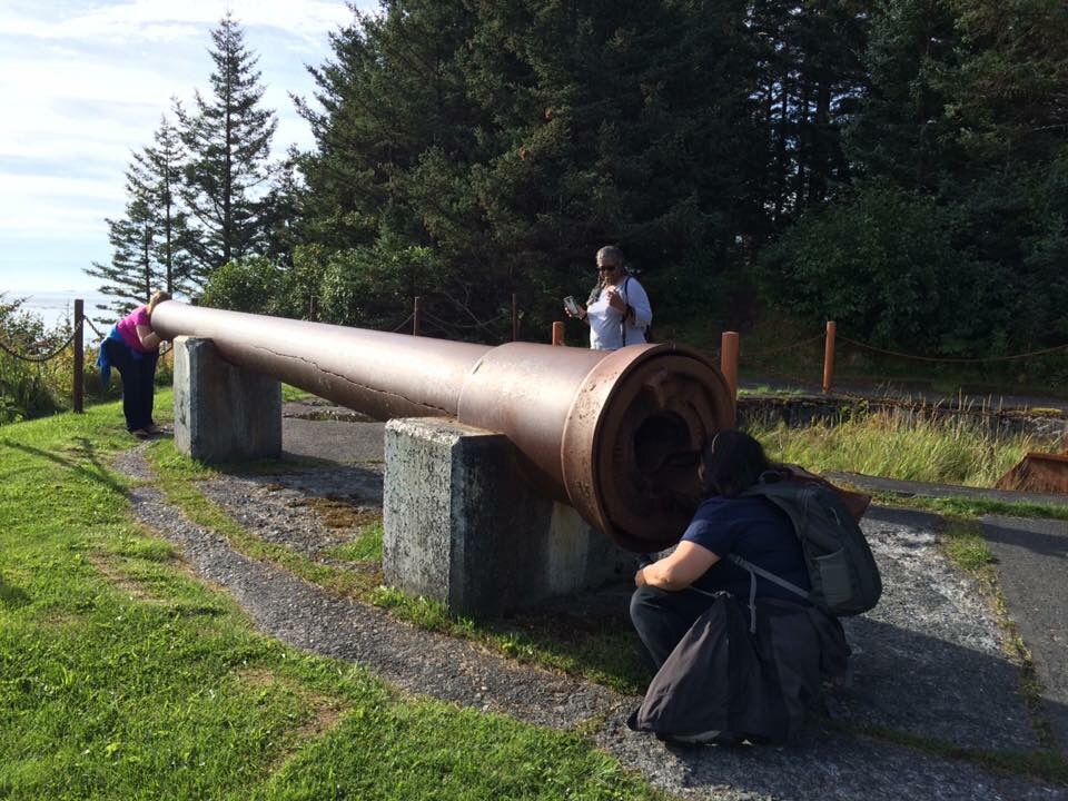 We didn’t plan ahead for the one restaurant in the area to be closed. Cheryl came to the rescue with her bag of spicy cashews. How did we miss that detail. Next was some of the Chiniak bunkers. On the way we spotted salmon in the stream stopping to take pictures.