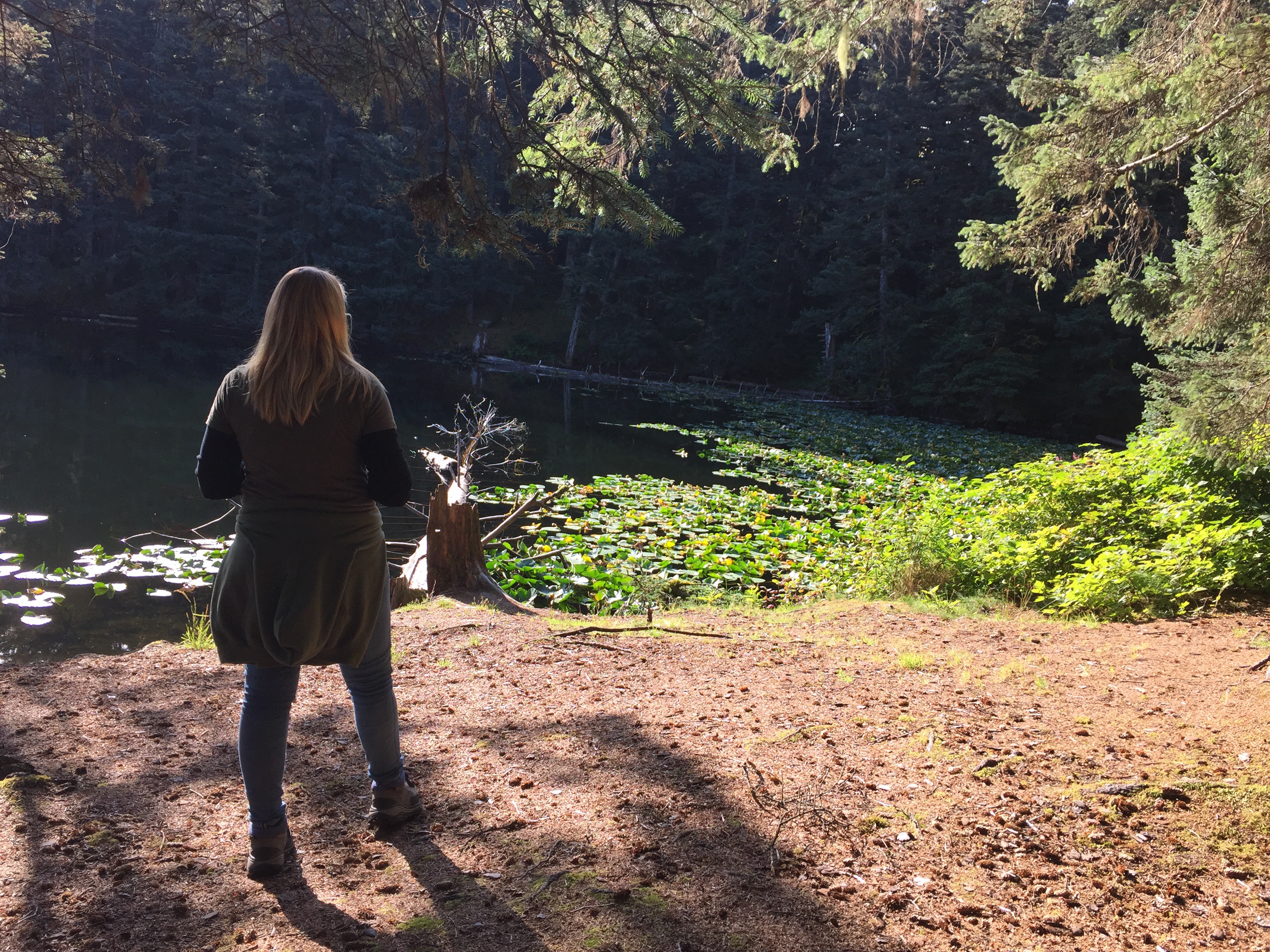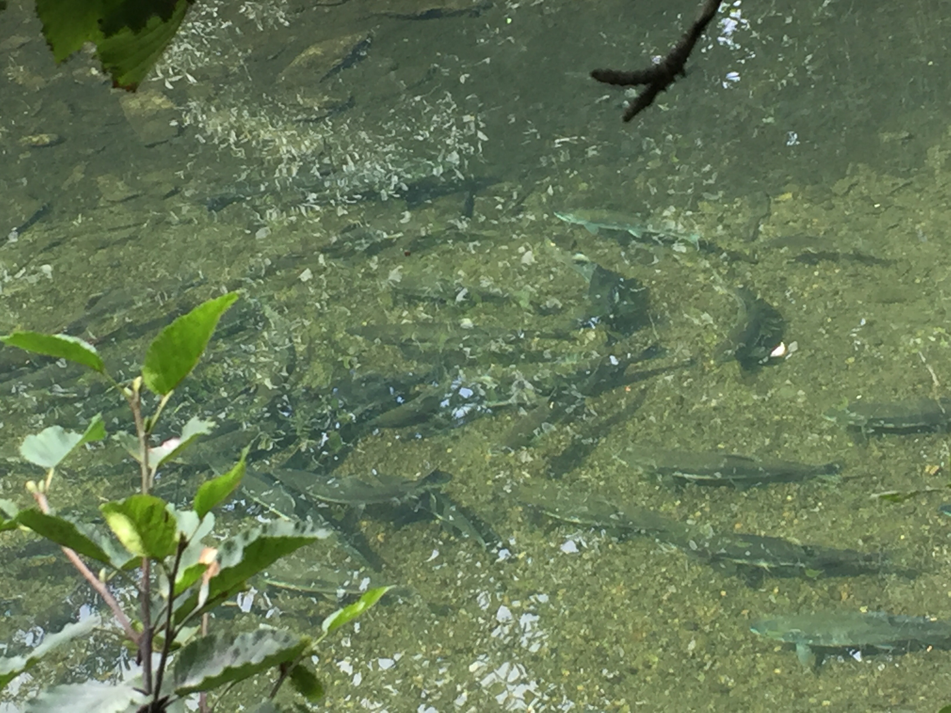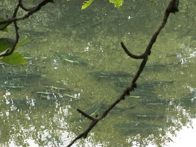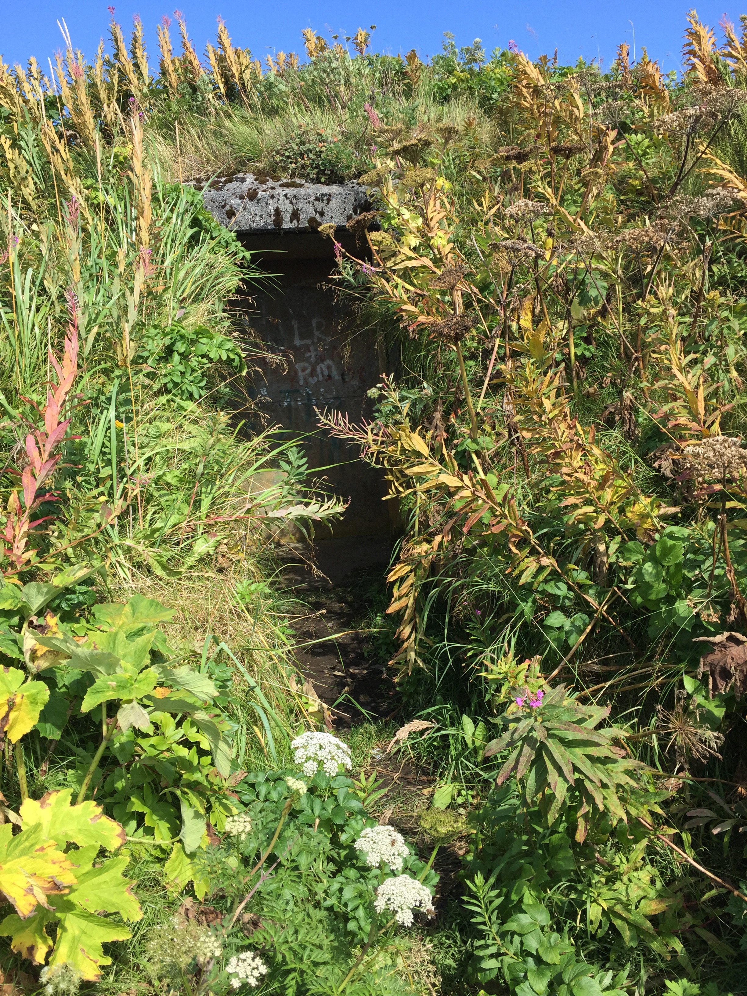 We didn’t plan ahead for the one restaurant in the area to be closed. Cheryl came to the rescue with her bag of spicy cashews. How did we miss that detail. Next was some of the Chiniak bunkers. On the way we spotted salmon in the stream stopping to take pictures.