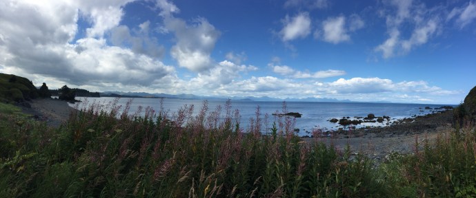 I didn’t really like how the jello turned out there was to much flavor and sugar and a hint of the bitterness that the tea has by it’s self. One of my favorite things here is beach bonfires, one of the nights dad was here we carried a pile of wood to Gibson’s Cove and enjoyed the beautiful view while roasting our reindeer sausage and marshmallows over the fire.