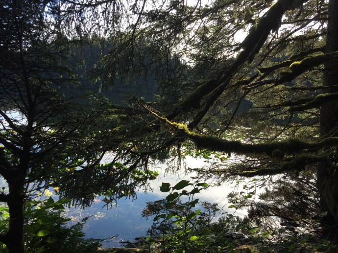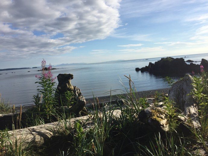We packed up late, afternoon. The kids states that when they came out of their tent in the morning there was a mother and baby deer in camp that were so cute. The kids would have loved to stay for several more days and even I was sad we couldn’t have stayed another day. We would have been awefully short on food if we had stayed one more day. We didn’t bring our cooler on this trip and we were missing it. We stopped on our way home at Java Flats and picked up lunch then sat on the beach by sometimes island and ate our sandwiches. We picked some more fireweed blossoms enough to make another batch of jelly then headed on home. A shower was in order. After we were all clean and less smoky smelling we headed over to Near Island. We have been spending a lot of time on the little island that adjoins Near Island. This time we wanted to check out the rotary park, I was hoping there would be a new fun beach, but instead we found a gazebo and a whole bunch more salmon berries.