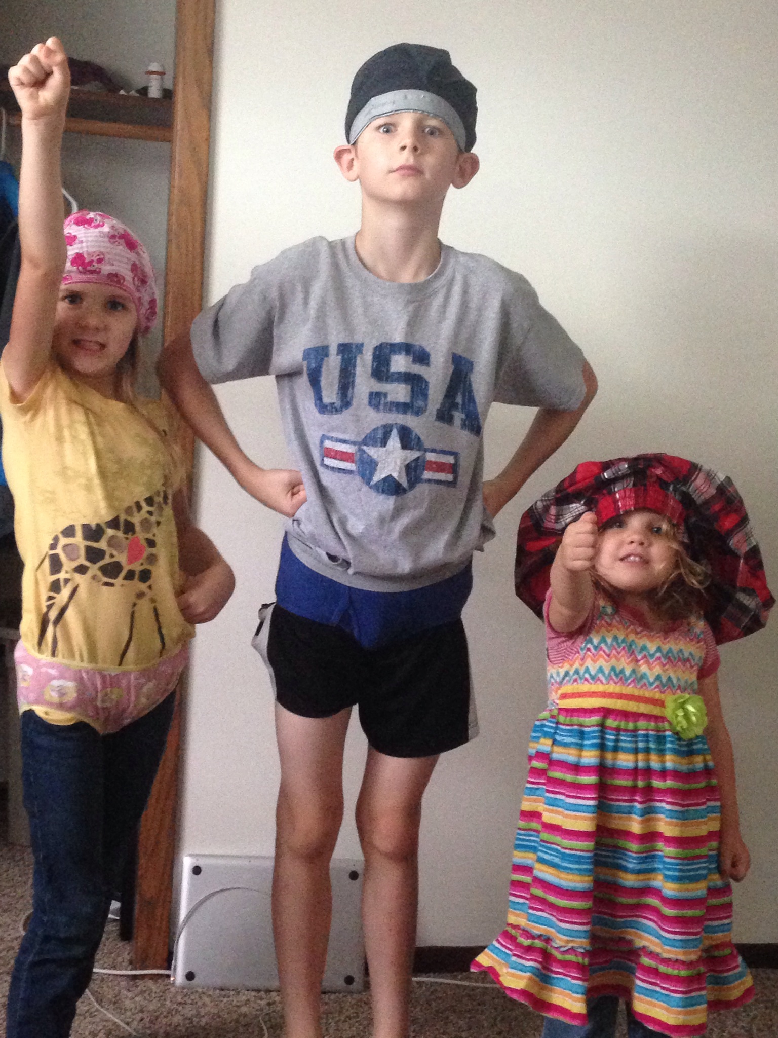 I stopped and picked up bread on the way home from work, walked Myra and then settled in at the table to wait for the kids to wake up. It didn’t take long. I managed to stay awake long enough to have breakfast and do most of the CC review with the kids. As I disappeared upstairs Chad yelled after me, “Hey, you can’t leave, what am I going to do with out my TA.” Lol, it’s good to feel loved. I woke up to a superman show of force by the underwear brigade.